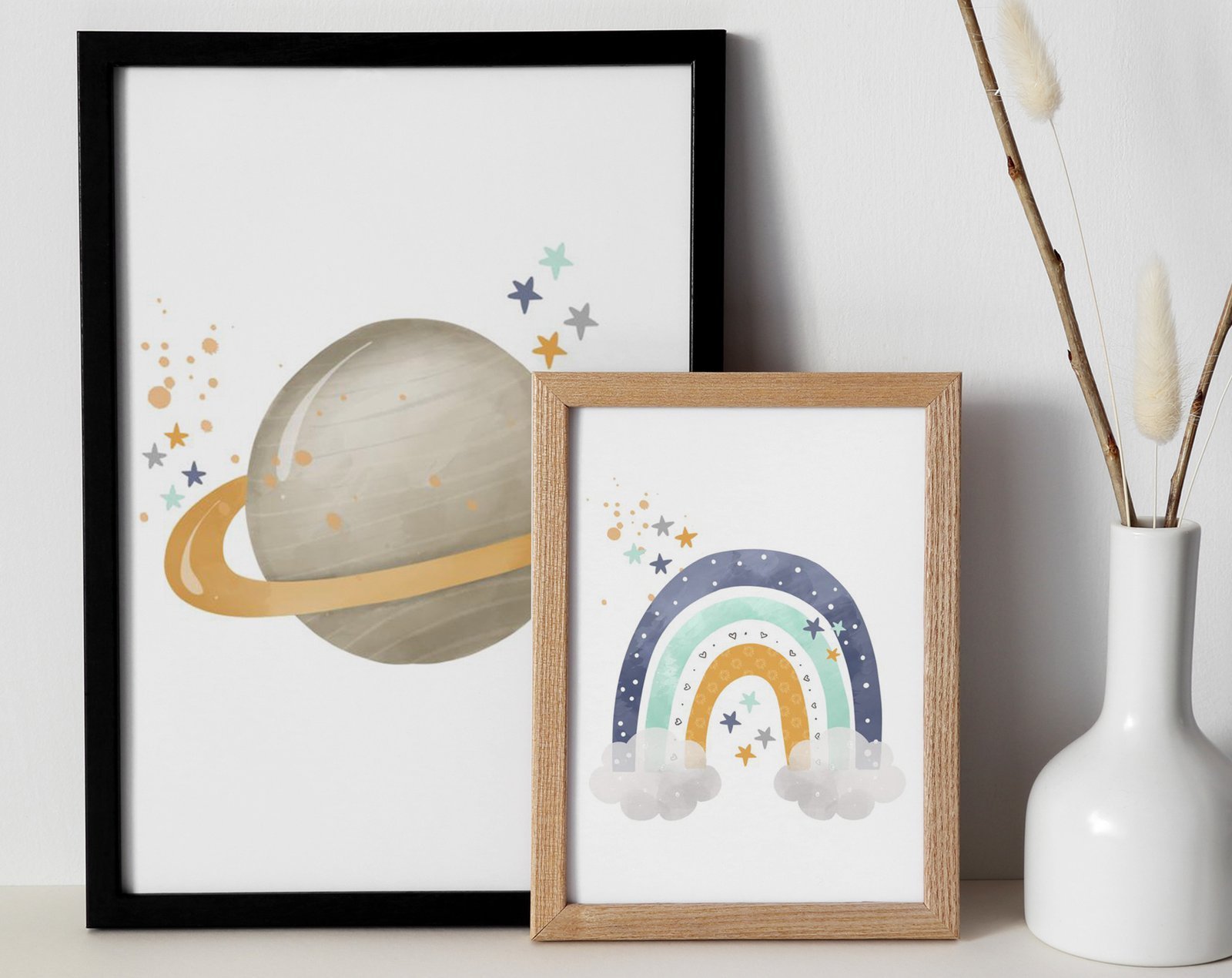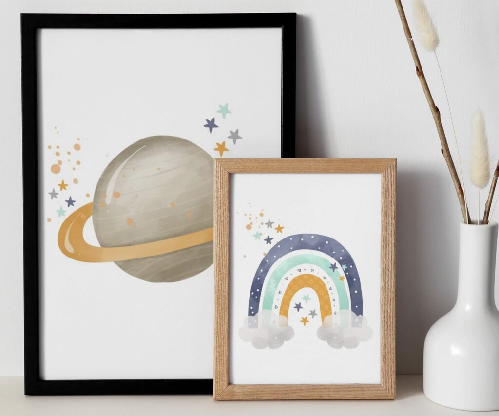 Our Neutral nursery print set, Space, Earthy tones, planet set of 2, soothing colors, and heartwarming quotes that are bound to bring joy and comfort to your baby’s room. Each print is thoughtfully crafted to add a touch of magic and wonder, making it an ideal gift for new parents or a special treat for your own bundle of joy.