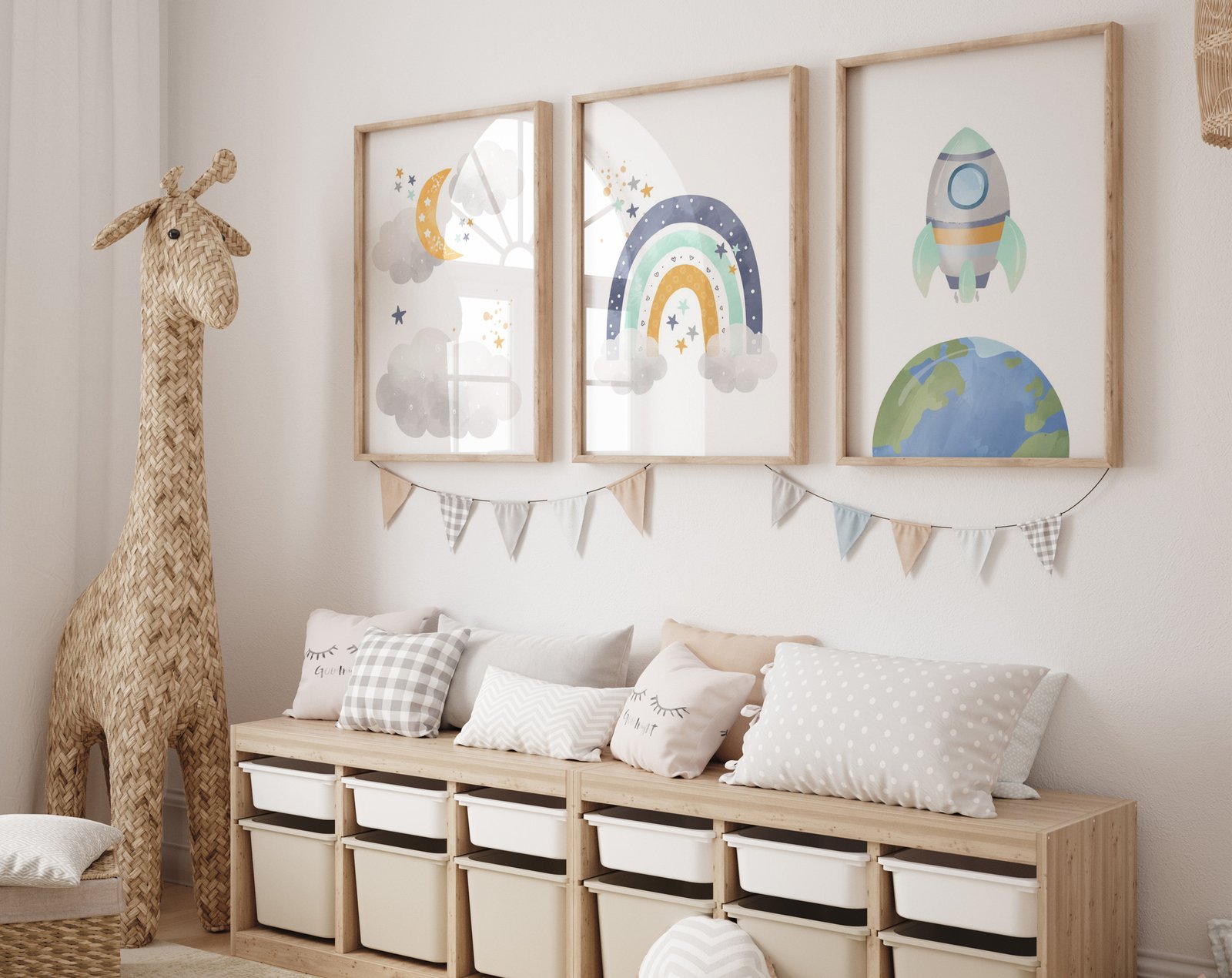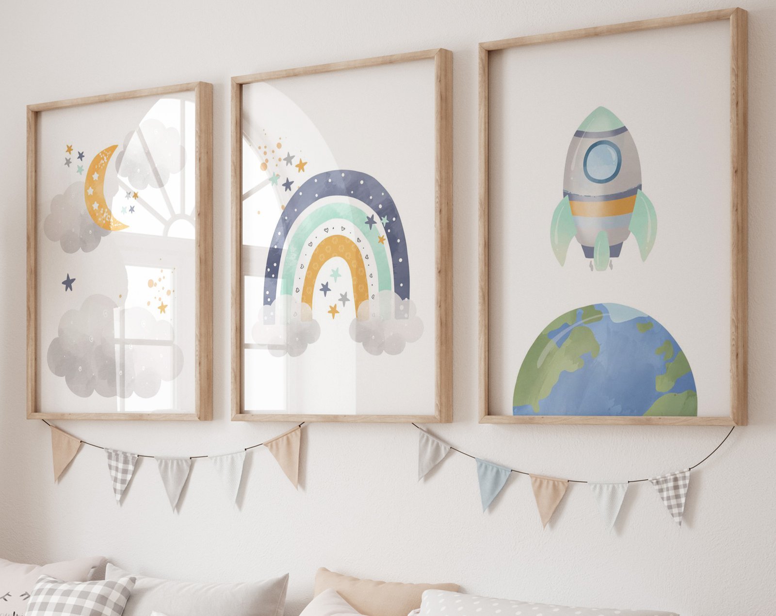 Our Neutral nursery print set, Space, Earthy tones, planet set of 3, soothing colors, and heartwarming quotes that are bound to bring joy and comfort to your baby’s room. Each print is thoughtfully crafted to add a touch of magic and wonder, making it an ideal gift for new parents or a special treat for your own bundle of joy.