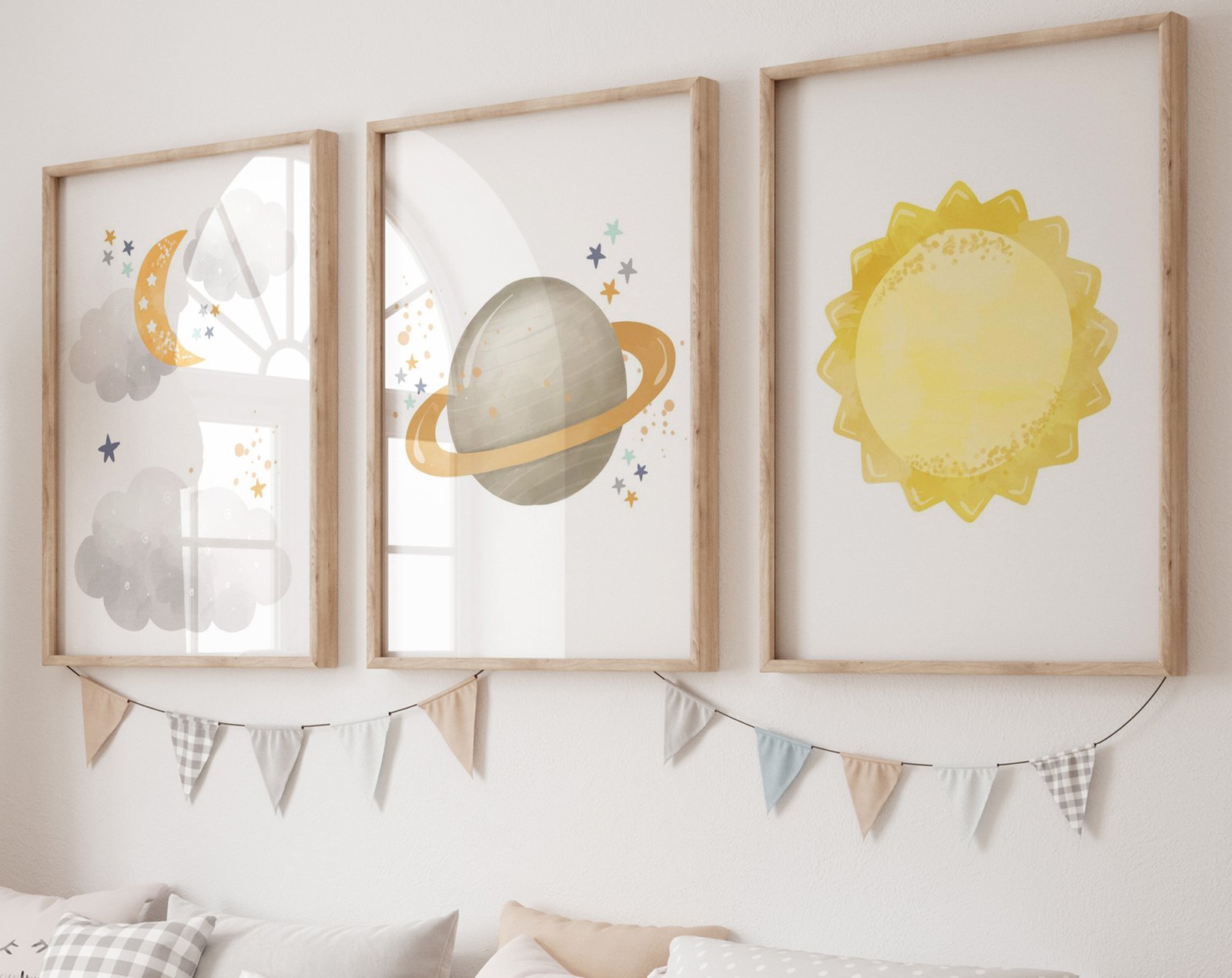 Our Neutral nursery print set, Space, Earthy tones, planet set of 3, soothing colors, and heartwarming quotes that are bound to bring joy and comfort to your baby’s room. Each print is thoughtfully crafted to add a touch of magic and wonder, making it an ideal gift for new parents or a special treat for your own bundle of joy.