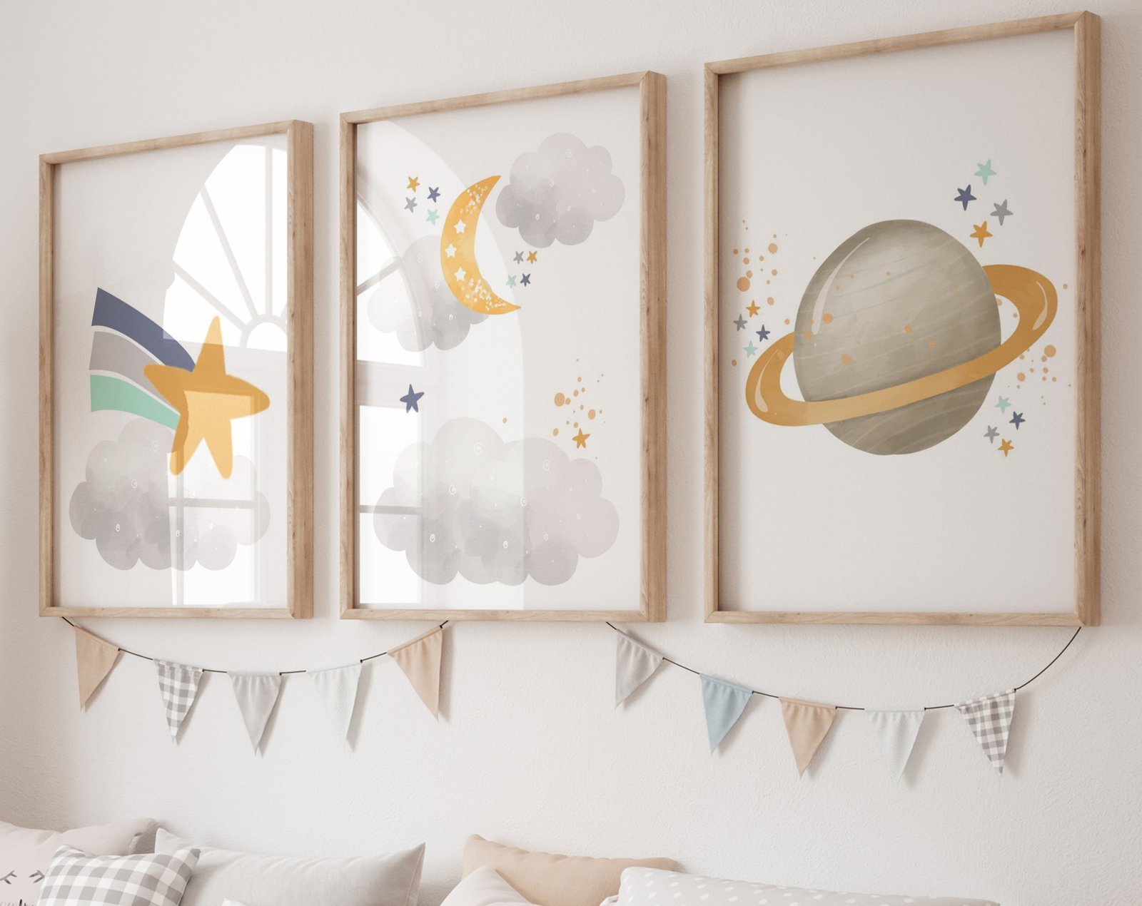 Our Neutral nursery print set, Space, Earthy tones, planet set of 3, soothing colors, and heartwarming quotes that are bound to bring joy and comfort to your baby’s room. Each print is thoughtfully crafted to add a touch of magic and wonder, making it an ideal gift for new parents or a special treat for your own bundle of joy.