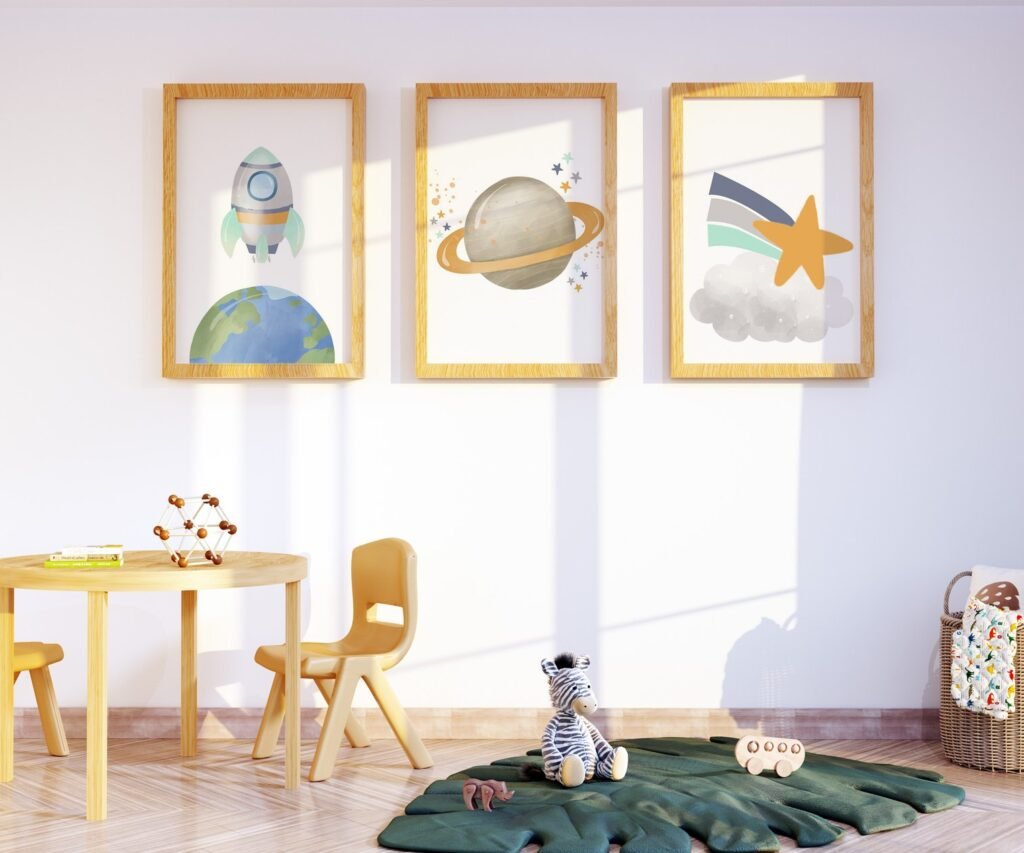 Our Neutral nursery print set, Space, Earthy tones, planet set of 3, soothing colors, and heartwarming quotes that are bound to bring joy and comfort to your baby’s room. Each print is thoughtfully crafted to add a touch of magic and wonder, making it an ideal gift for new parents or a special treat for your own bundle of joy.