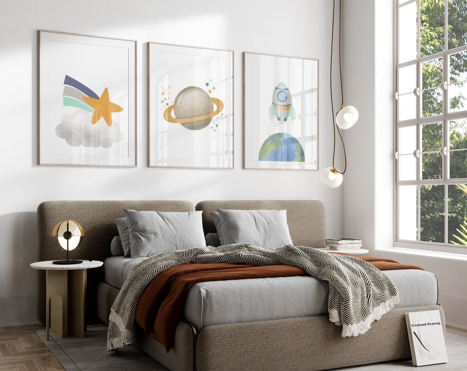 Neutral nursery print set, Space, Earthy tones, planet set of 3