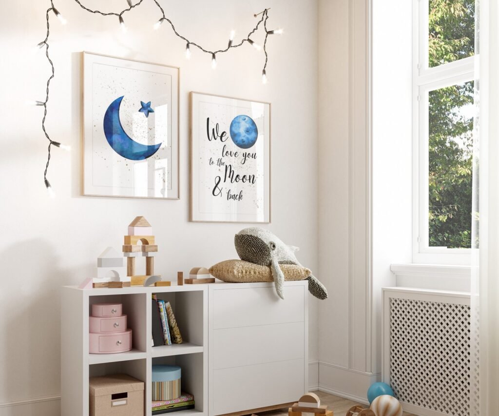 Our Nursery decor boy navy blue, Nursery wall art boy, moon and stars, we love you to the moon and back set of 2, soothing colors, and heartwarming quotes that are bound to bring joy and comfort to your baby’s room. Each print is thoughtfully crafted to add a touch of magic and wonder, making it an ideal gift for new parents or a special treat for your own bundle of joy.