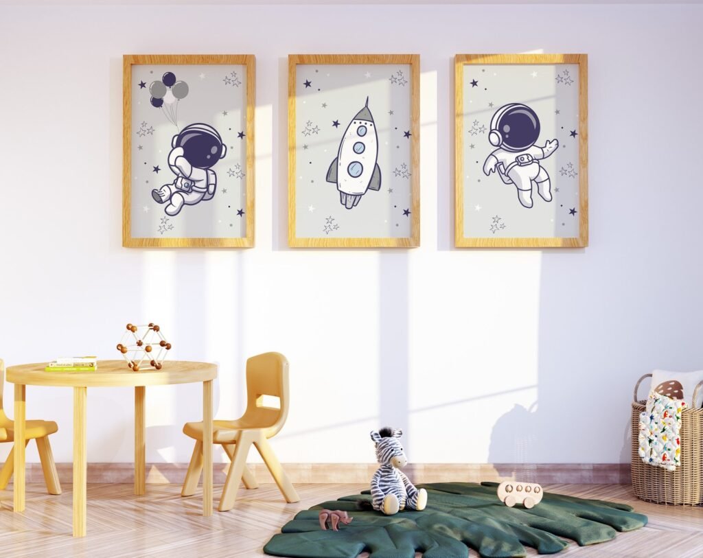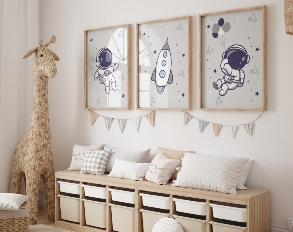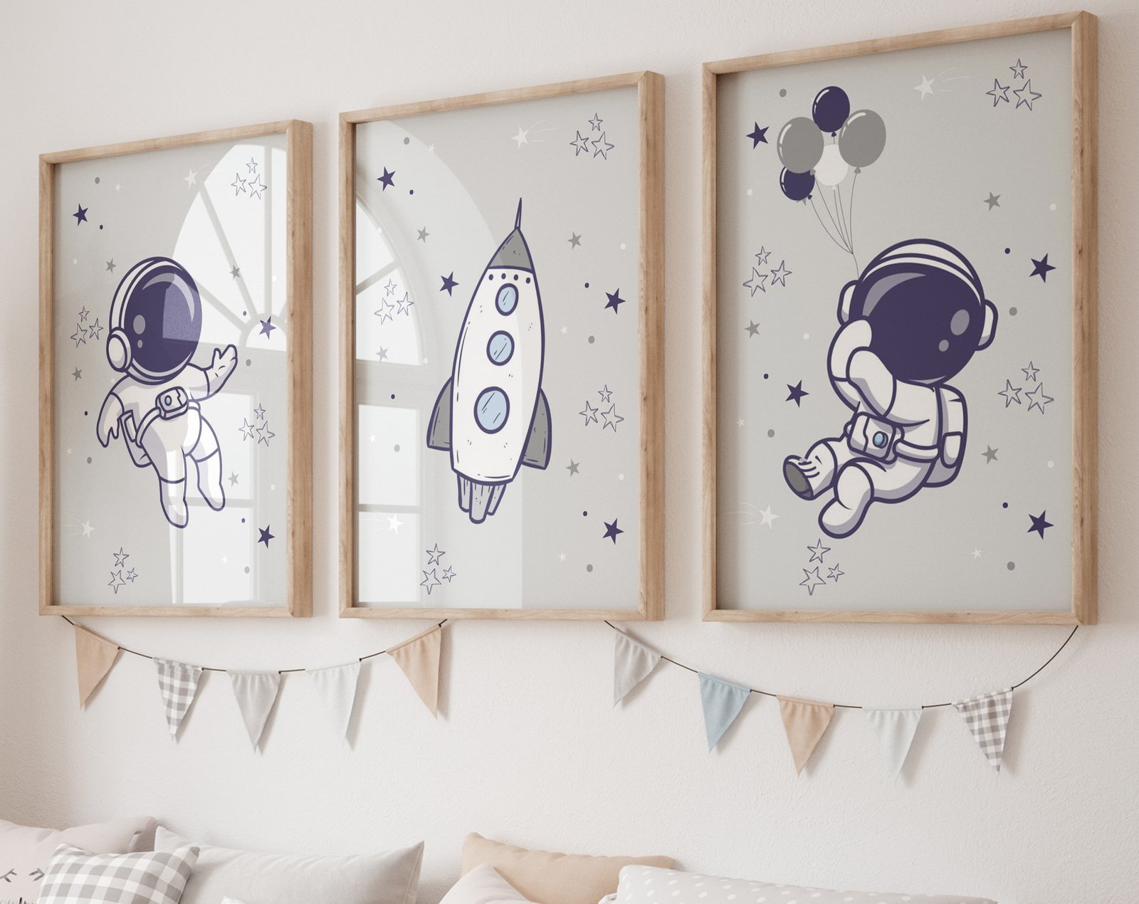 Nursery decor boy space, Nursery wall art space, Space nursery set of 3