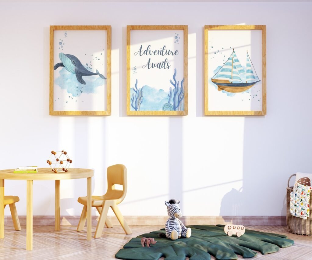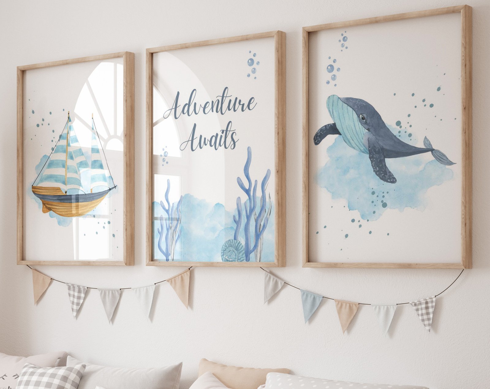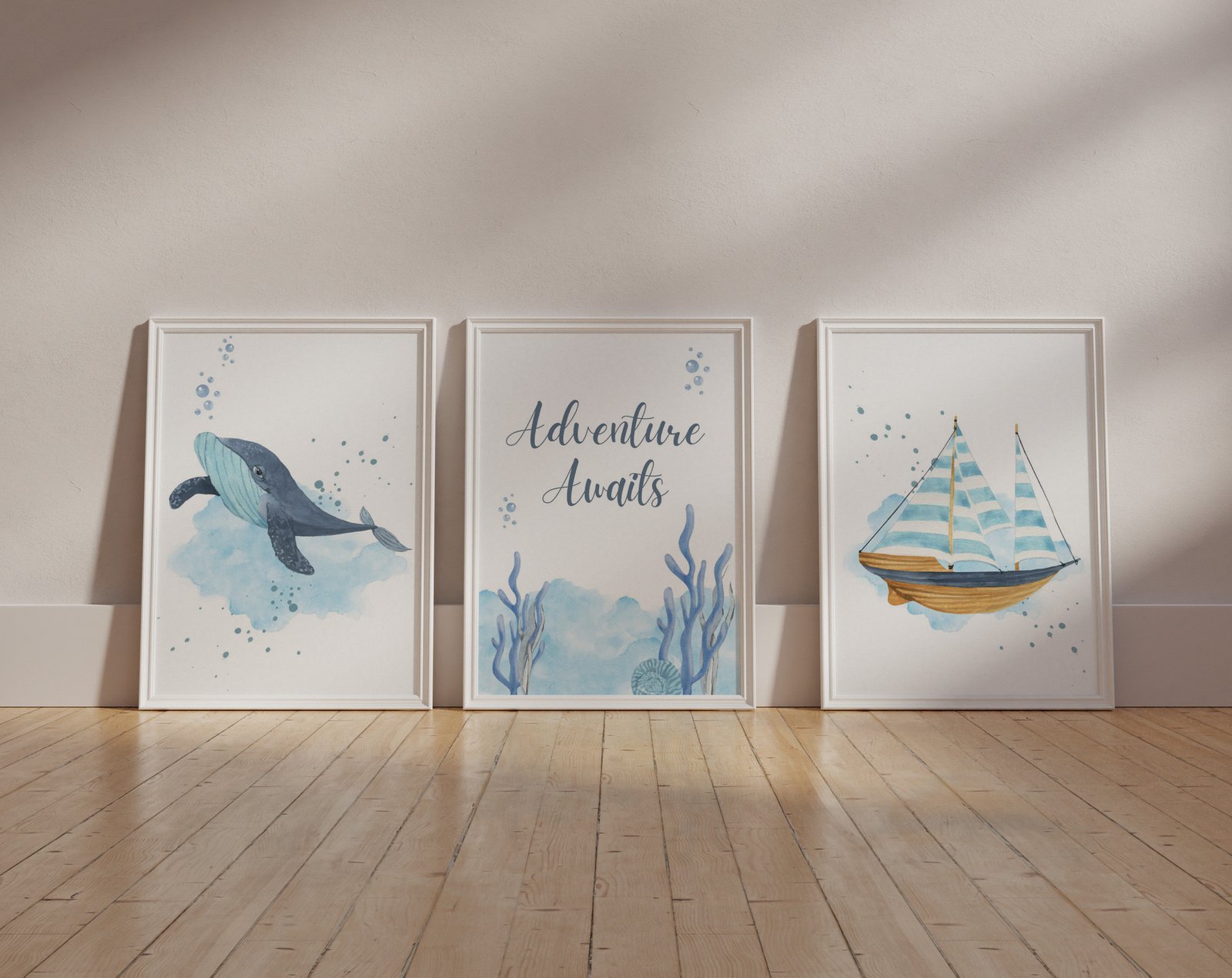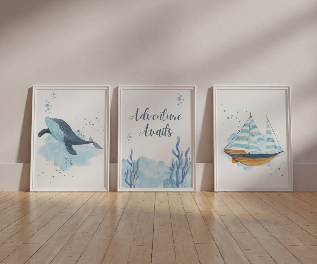 Ocean nursery decor, Nautical nursery print, under the sea nursery, gender neutral nursery, ocean, nautical, Under the sea wall art set of 3