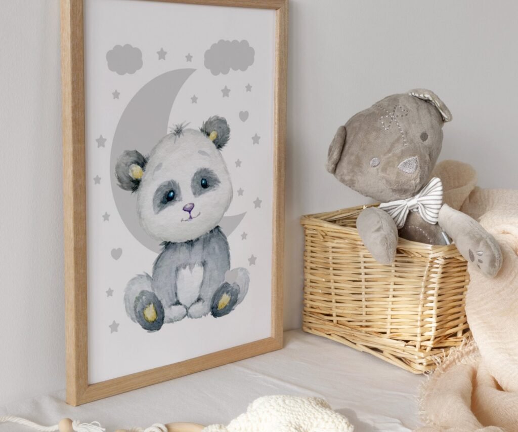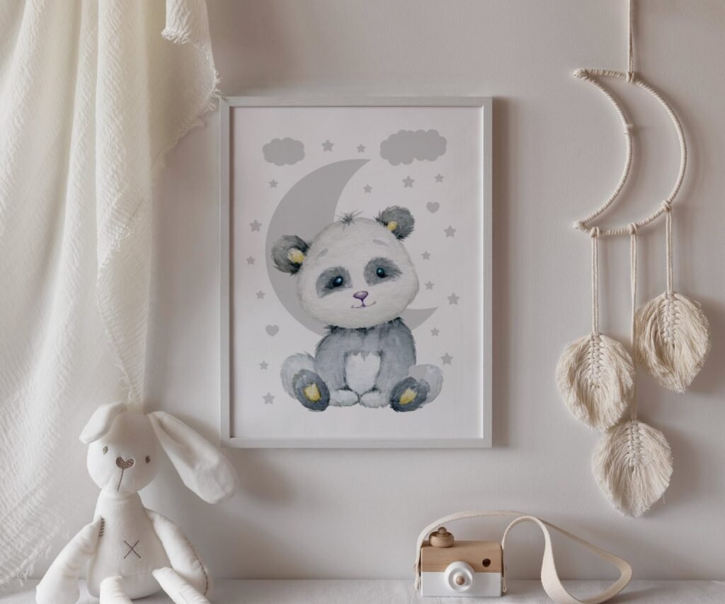 Our Panda Nursery, set of 1, soothing colors, and heartwarming quotes that are bound to bring joy and comfort to your baby’s room. Each print is thoughtfully crafted to add a touch of magic and wonder, making it an ideal gift for new parents or a special treat for your own bundle of joy.