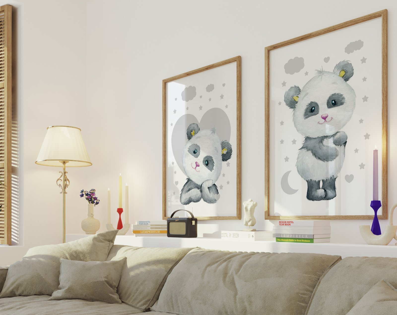 Our Panda Nursery, set of 2, soothing colors, and heartwarming quotes that are bound to bring joy and comfort to your baby’s room. Each print is thoughtfully crafted to add a touch of magic and wonder, making it an ideal gift for new parents or a special treat for your own bundle of joy.