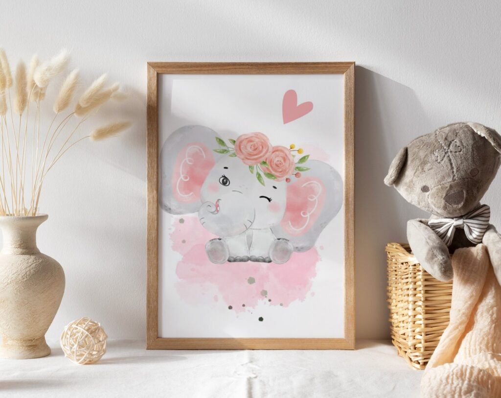 Our Pink Gray Girl Elephant nursery set of 1, soothing colors, and heartwarming quotes that are bound to bring joy and comfort to your baby’s room. Each print is thoughtfully crafted to add a touch of magic and wonder, making it an ideal gift for new parents or a special treat for your own bundle of joy.