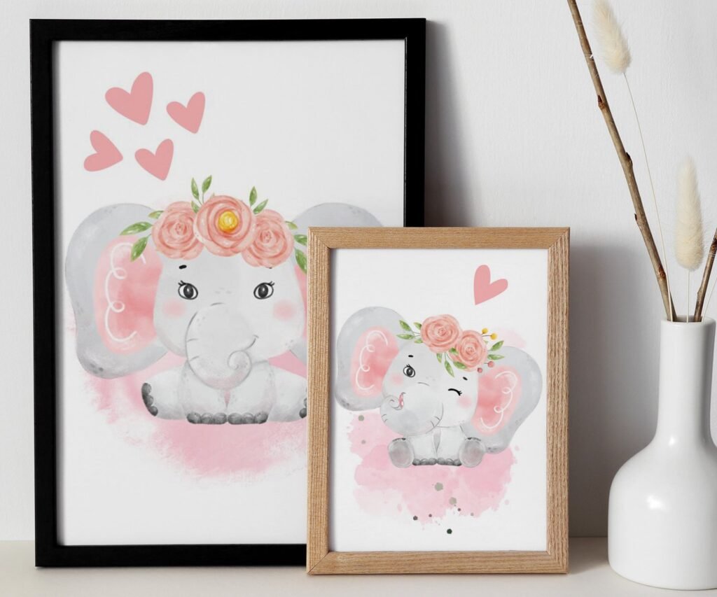 Our Pink Gray Girl Elephant nursery set of 2, soothing colors, and heartwarming quotes that are bound to bring joy and comfort to your baby’s room. Each print is thoughtfully crafted to add a touch of magic and wonder, making it an ideal gift for new parents or a special treat for your own bundle of joy.