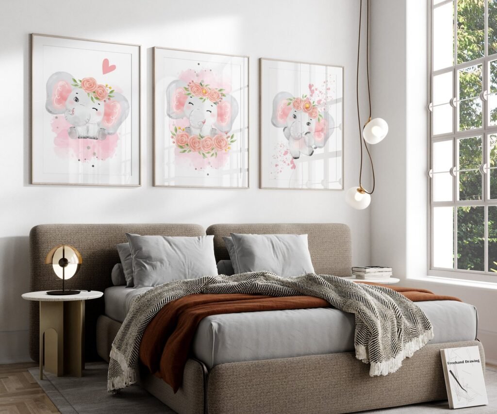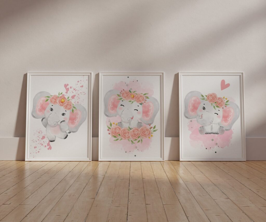 Our Pink Gray Girl Elephant nursery set of 3, soothing colors, and heartwarming quotes that are bound to bring joy and comfort to your baby’s room. Each print is thoughtfully crafted to add a touch of magic and wonder, making it an ideal gift for new parents or a special treat for your own bundle of joy.