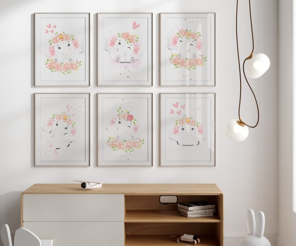 Our Pink Gray Girl Elephant nursery set of 6, soothing colors, and heartwarming quotes that are bound to bring joy and comfort to your baby’s room. Each print is thoughtfully crafted to add a touch of magic and wonder, making it an ideal gift for new parents or a special treat for your own bundle of joy.