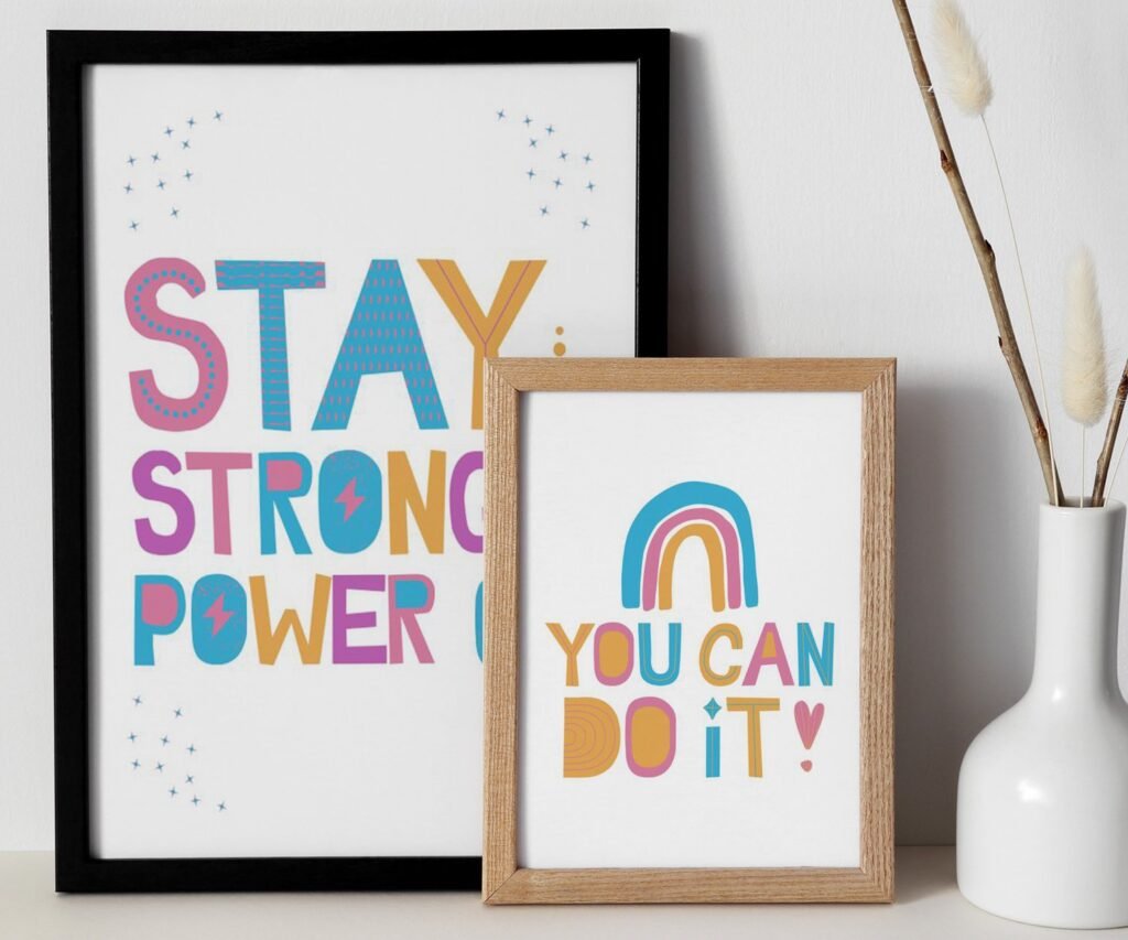 Our Positive kids Affirmations multiolors set of 2, soothing colors, and heartwarming quotes that are bound to bring joy and comfort to your baby’s room. Each print is thoughtfully crafted to add a touch of magic and wonder, making it an ideal gift for new parents or a special treat for your own bundle of joy.