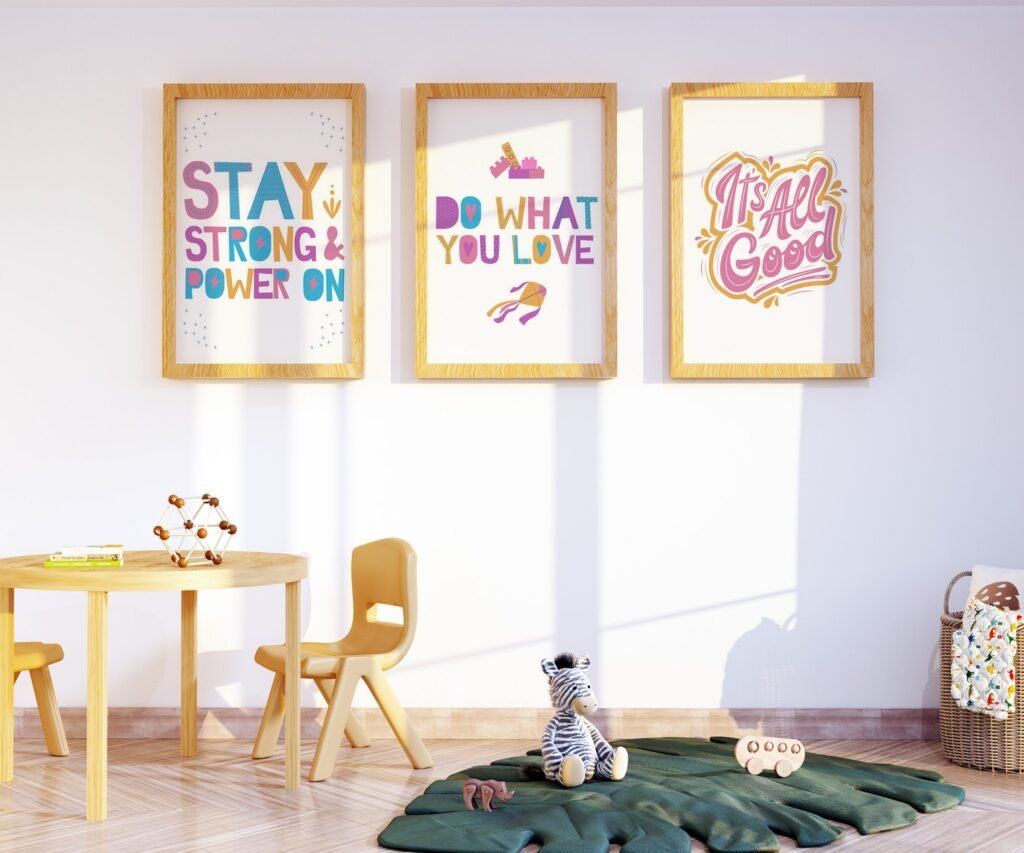 Our Positive kids Affirmations multiolors set of 3, soothing colors, and heartwarming quotes that are bound to bring joy and comfort to your baby’s room. Each print is thoughtfully crafted to add a touch of magic and wonder, making it an ideal gift for new parents or a special treat for your own bundle of joy.