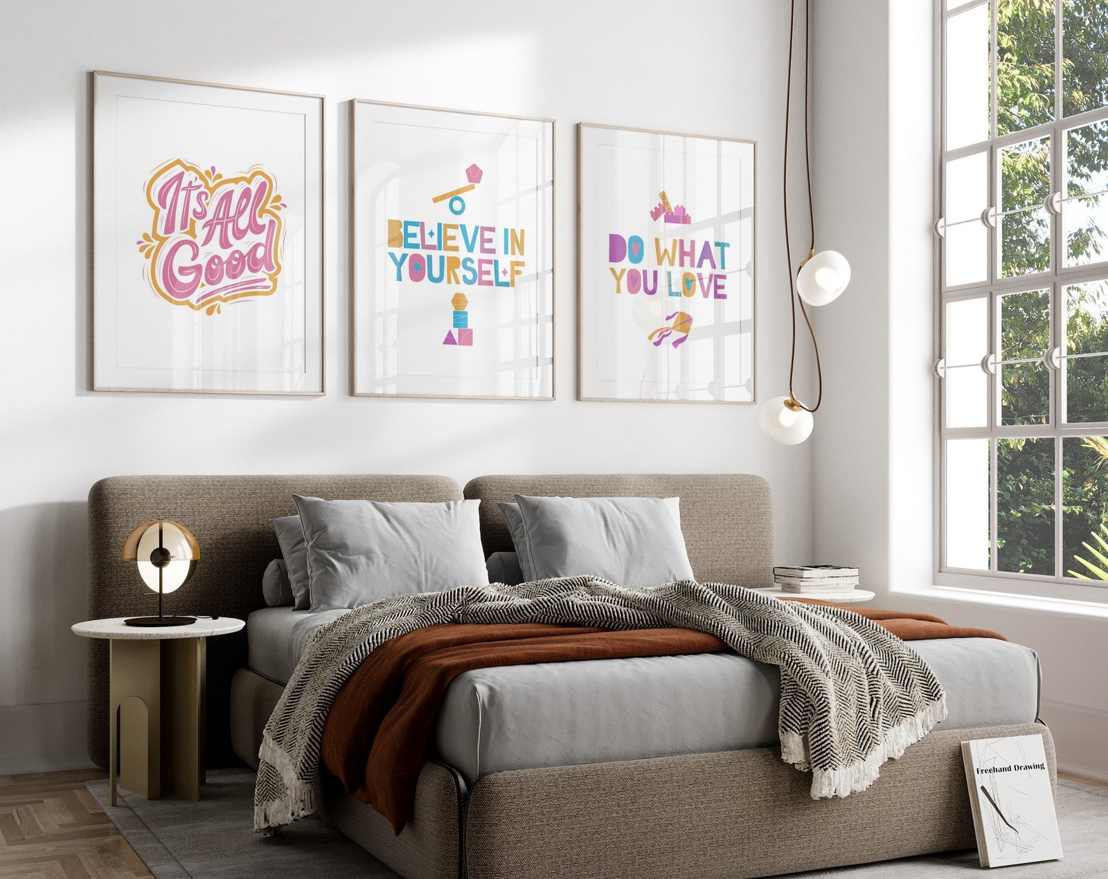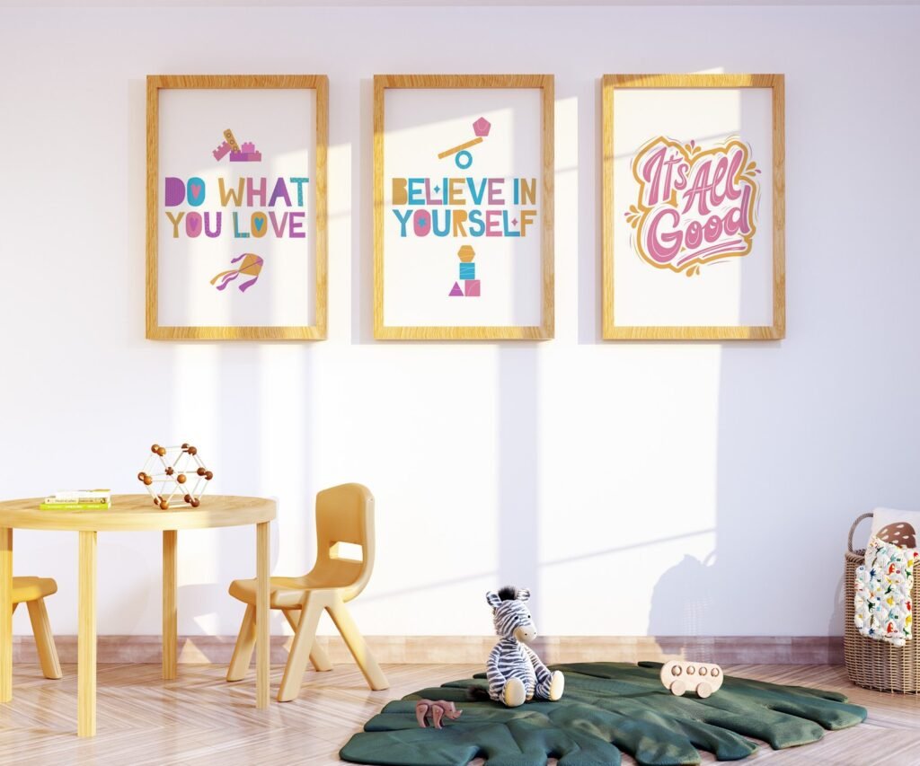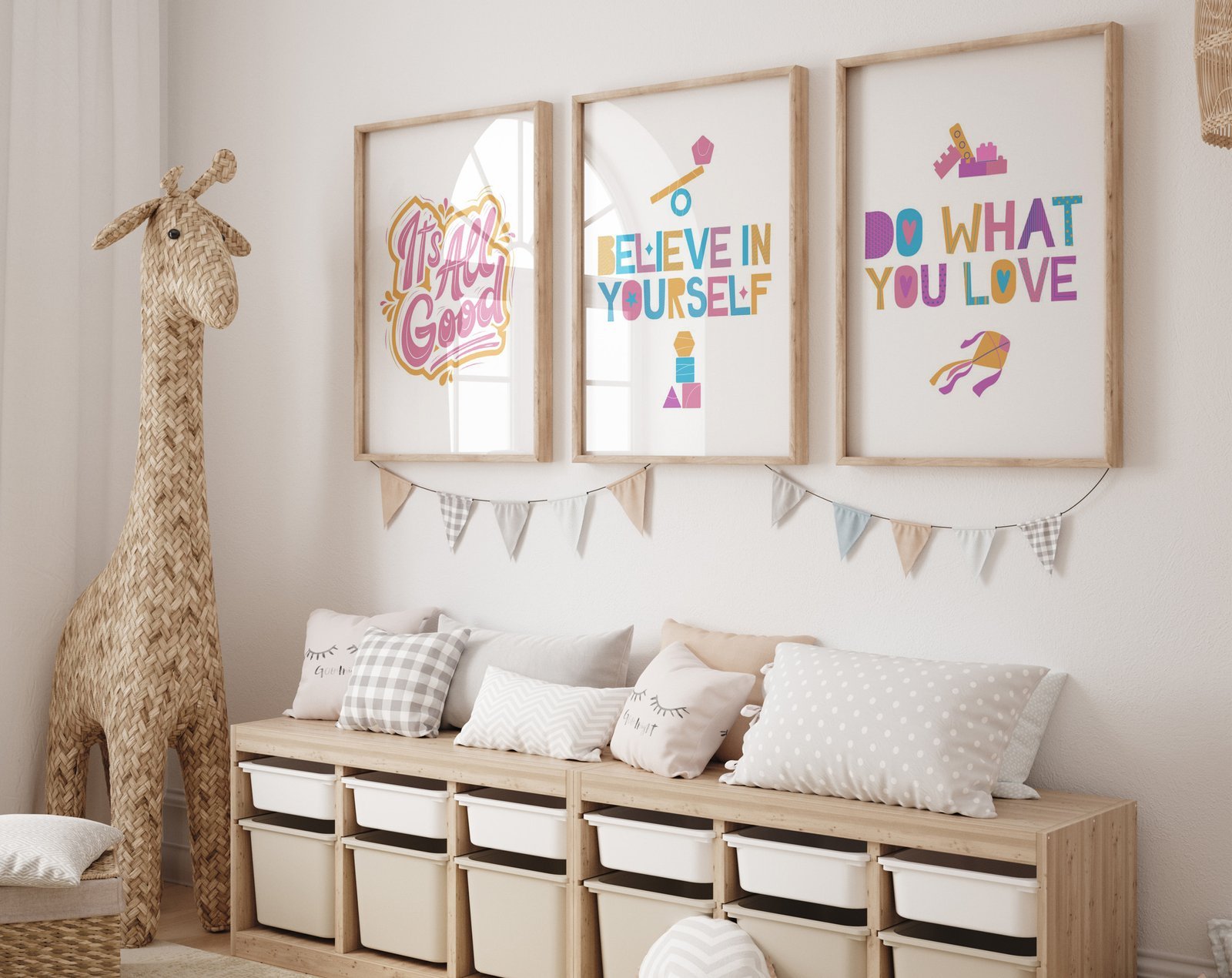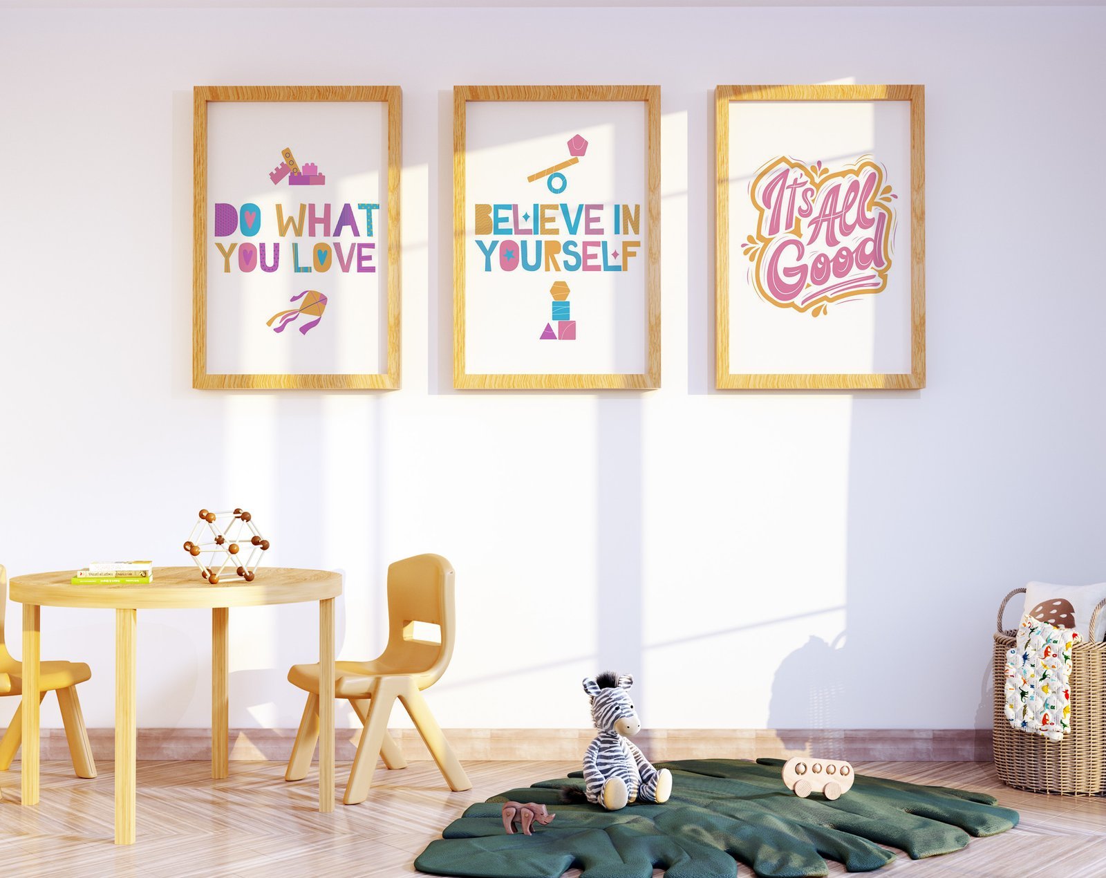 Our Positive kids Affirmations multiolors set of 3, soothing colors, and heartwarming quotes that are bound to bring joy and comfort to your baby’s room. Each print is thoughtfully crafted to add a touch of magic and wonder, making it an ideal gift for new parents or a special treat for your own bundle of joy.
