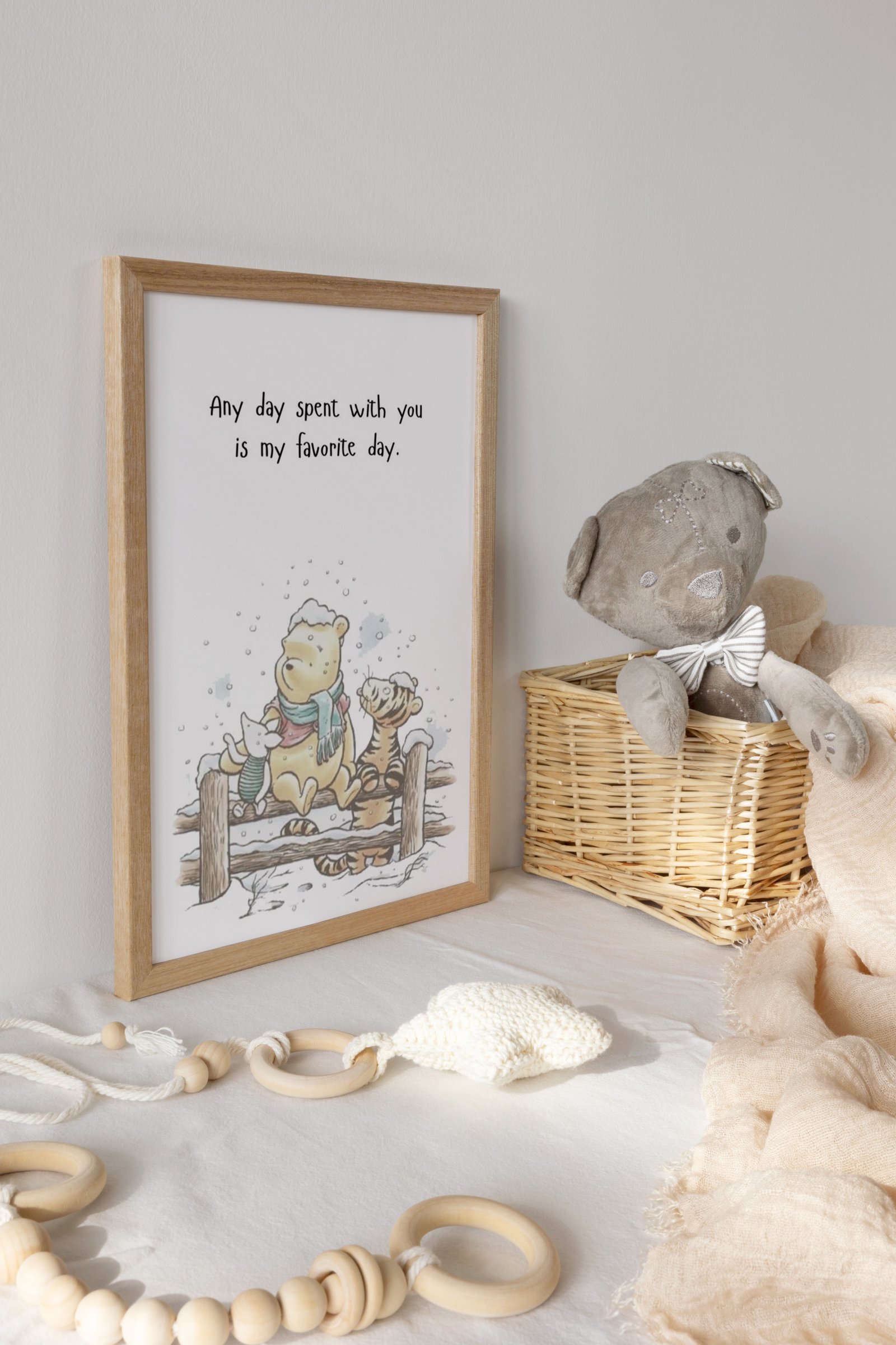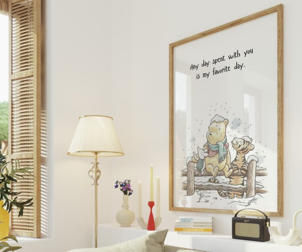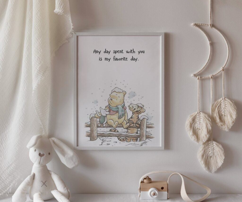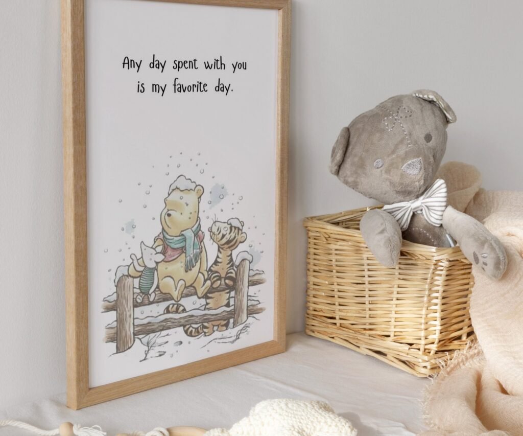 Our Quote Prints Winnie the Pooh, set of 1, soothing colors, and heartwarming quotes that are bound to bring joy and comfort to your baby’s room. Each print is thoughtfully crafted to add a touch of magic and wonder, making it an ideal gift for new parents or a special treat for your own bundle of joy.