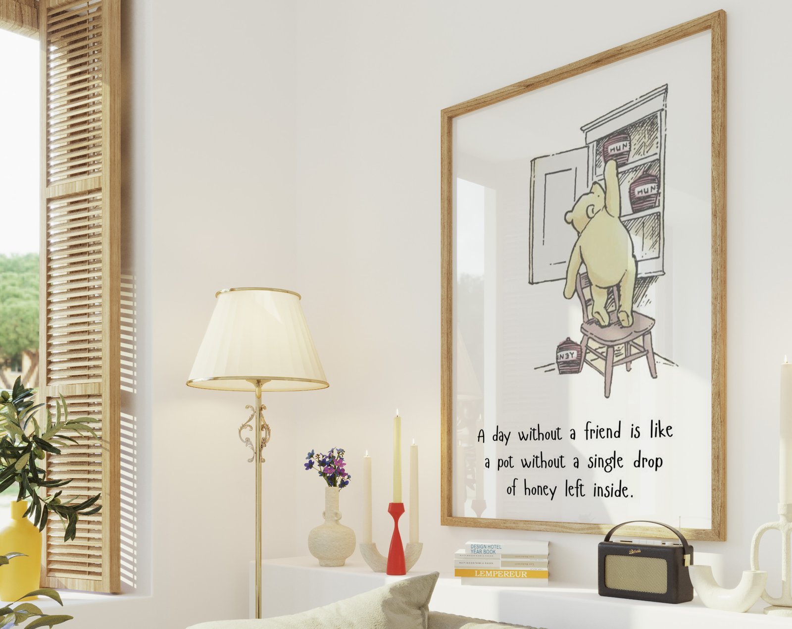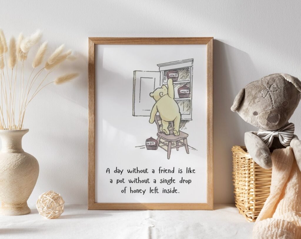 Our Quote Prints Winnie the Pooh, set of 1, soothing colors, and heartwarming quotes that are bound to bring joy and comfort to your baby’s room. Each print is thoughtfully crafted to add a touch of magic and wonder, making it an ideal gift for new parents or a special treat for your own bundle of joy.
