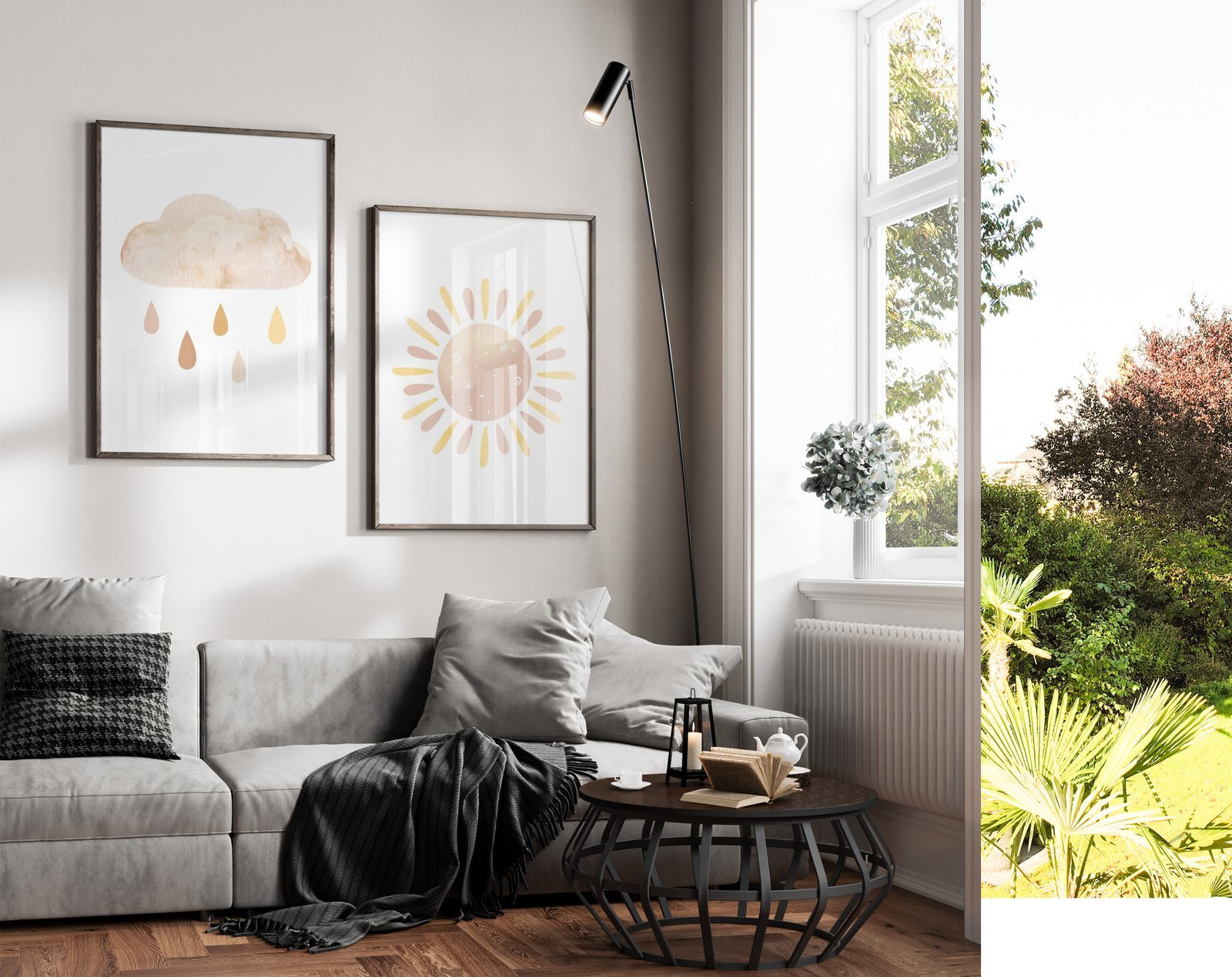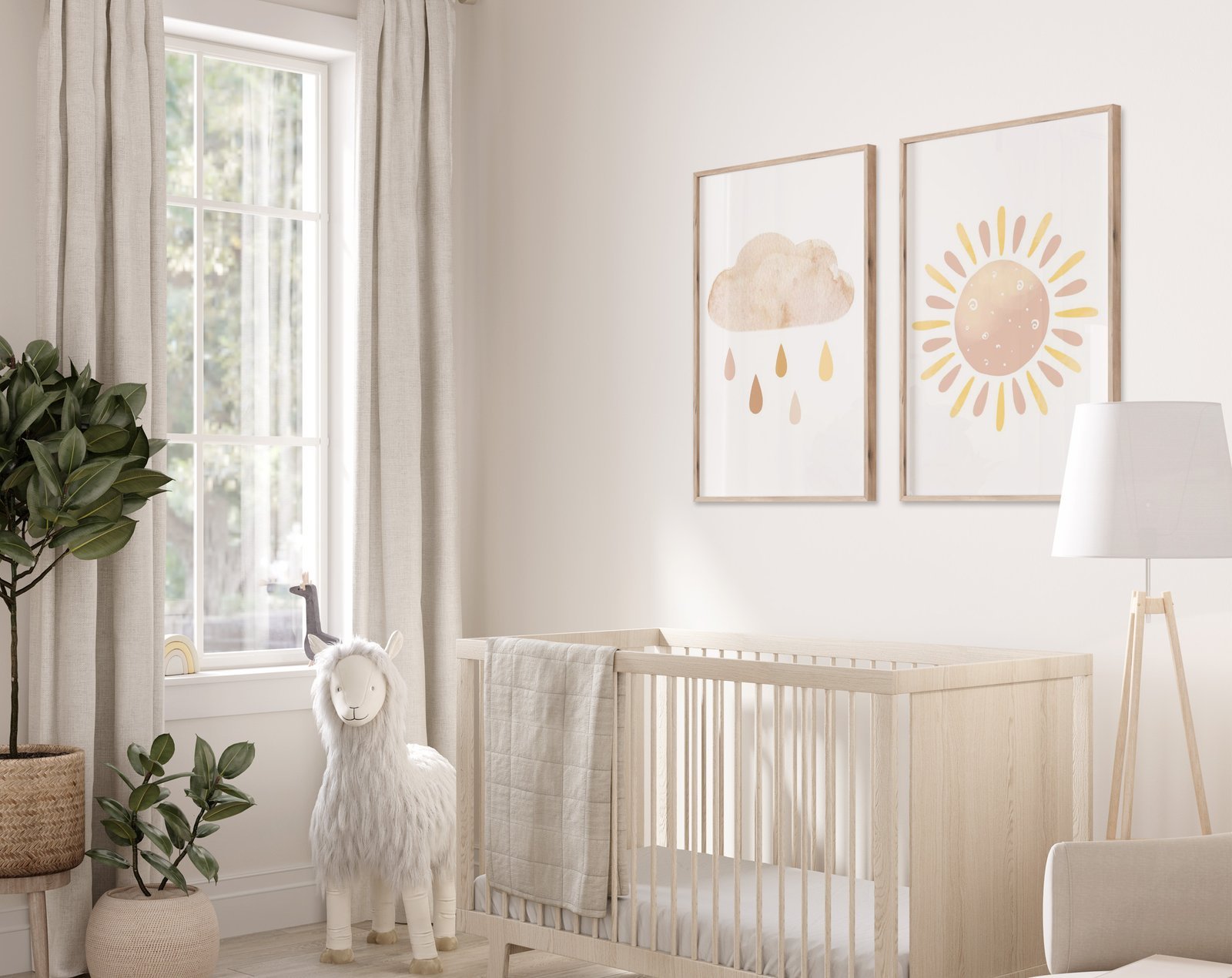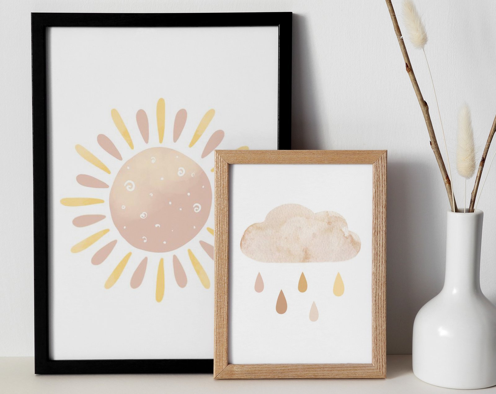 Our Rainbow,Sky Cloud Sun, Watercolor Rainbow set of 2, soothing colors, and heartwarming quotes that are bound to bring joy and comfort to your baby’s room. Each print is thoughtfully crafted to add a touch of magic and wonder, making it an ideal gift for new parents or a special treat for your own bundle of joy.