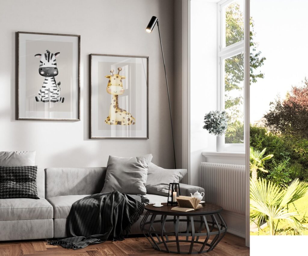 Our Safari Animal Friends set of 2 Lion Zebra Giraffe gray, soothing colors, and heartwarming quotes that are bound to bring joy and comfort to your baby’s room. Each print is thoughtfully crafted to add a touch of magic and wonder, making it an ideal gift for new parents or a special treat for your own bundle of joy.