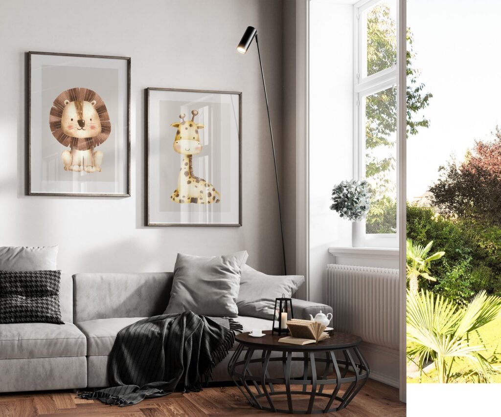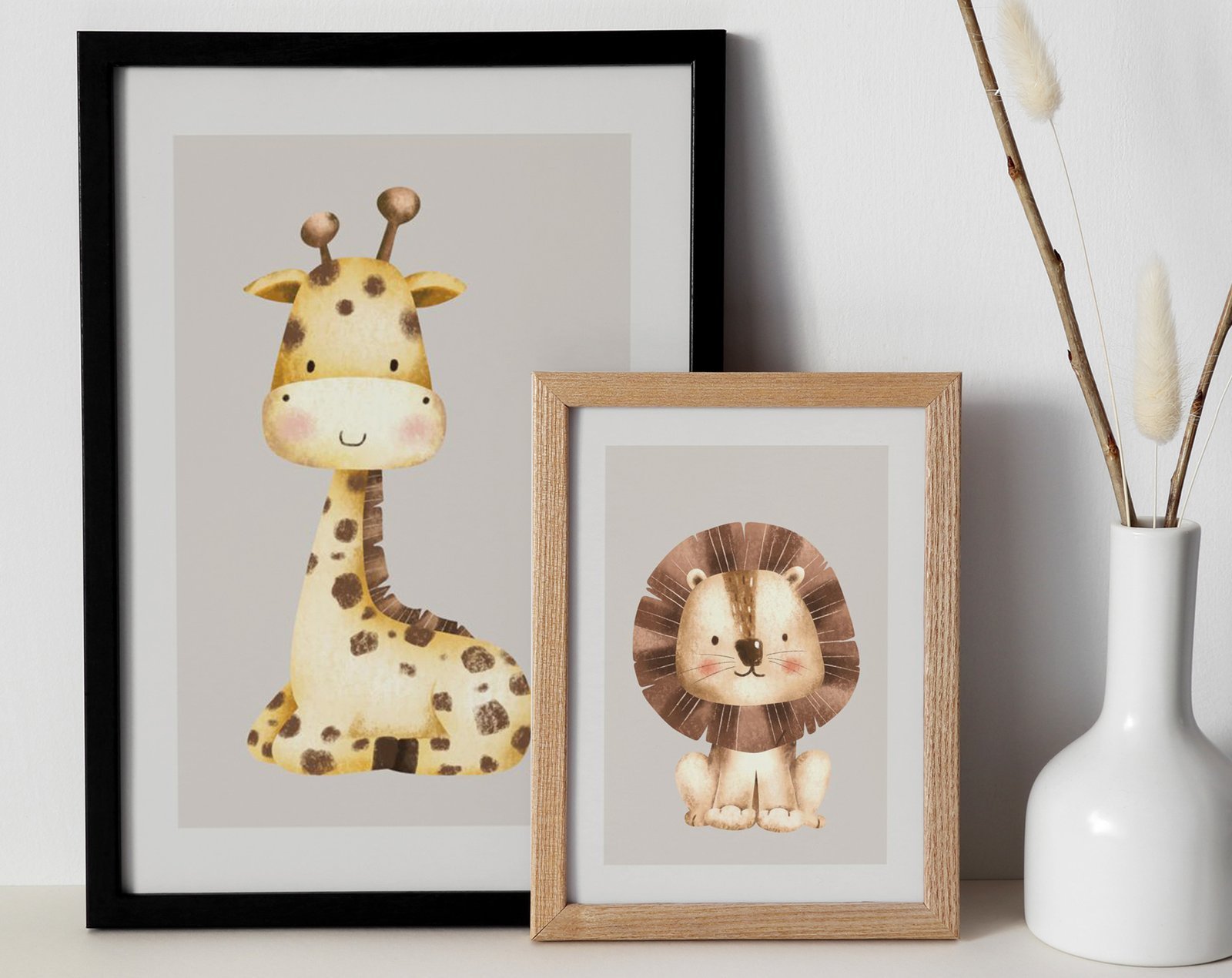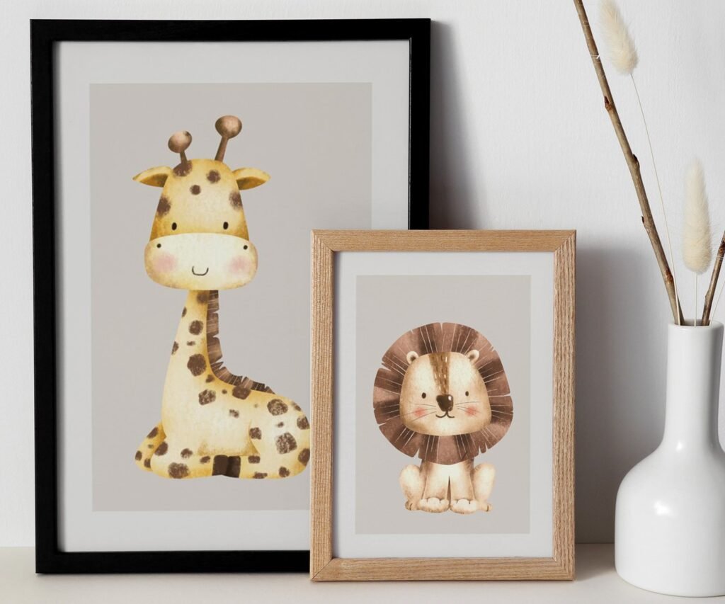 Our Safari Animal Friends set of 2 Lion Zebra Giraffe gray, soothing colors, and heartwarming quotes that are bound to bring joy and comfort to your baby’s room. Each print is thoughtfully crafted to add a touch of magic and wonder, making it an ideal gift for new parents or a special treat for your own bundle of joy.