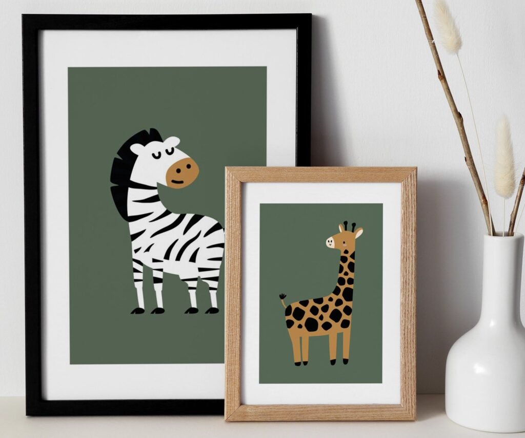 Our Safari animals, Green Nursery Prints, set of 2, soothing colors, and heartwarming quotes that are bound to bring joy and comfort to your baby’s room. Each print is thoughtfully crafted to add a touch of magic and wonder, making it an ideal gift for new parents or a special treat for your own bundle of joy.