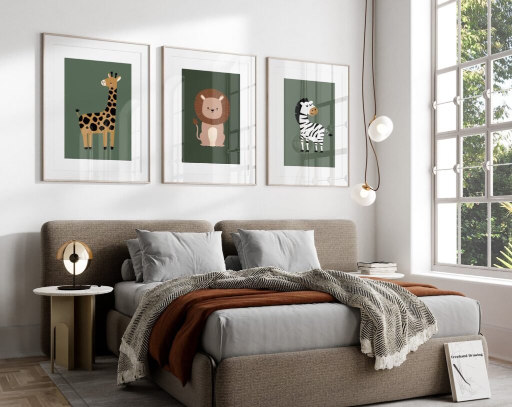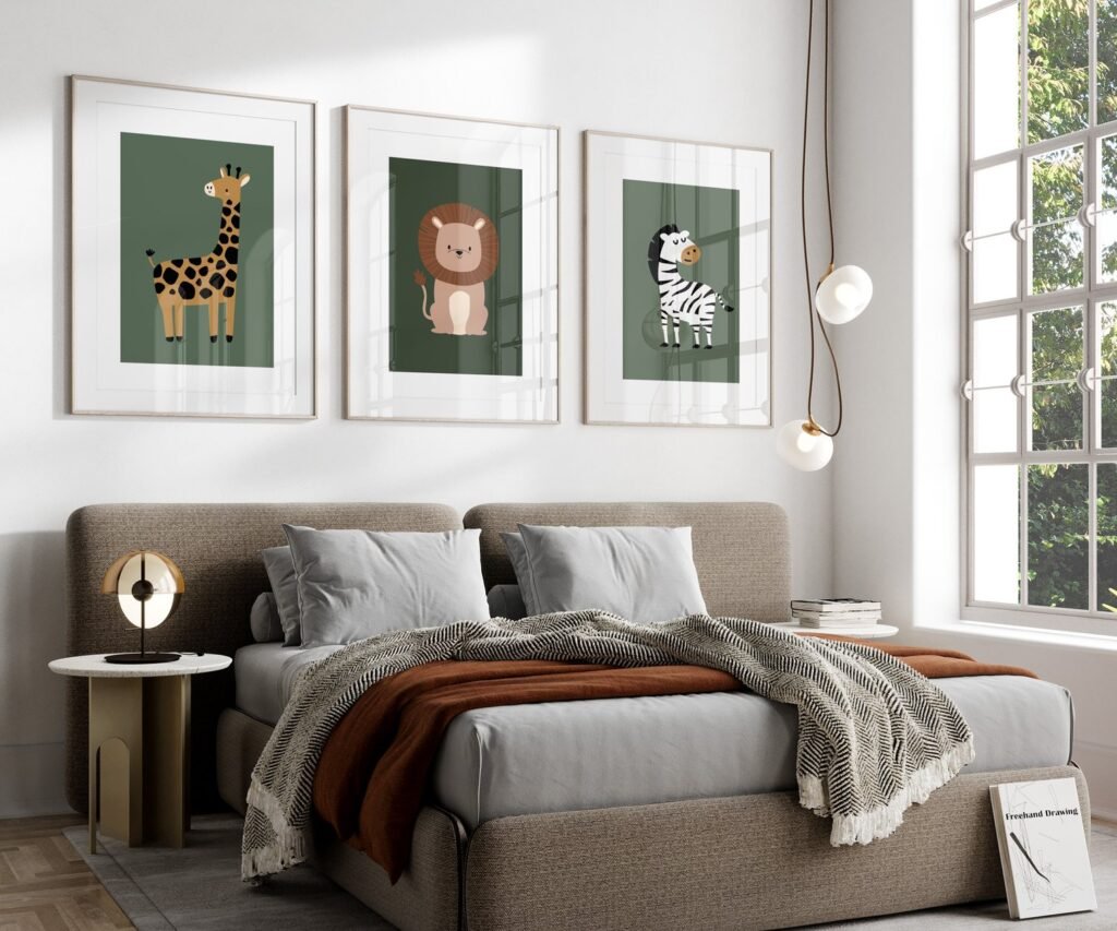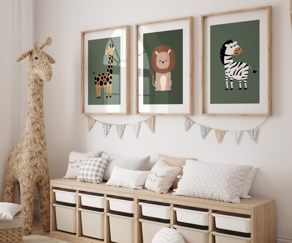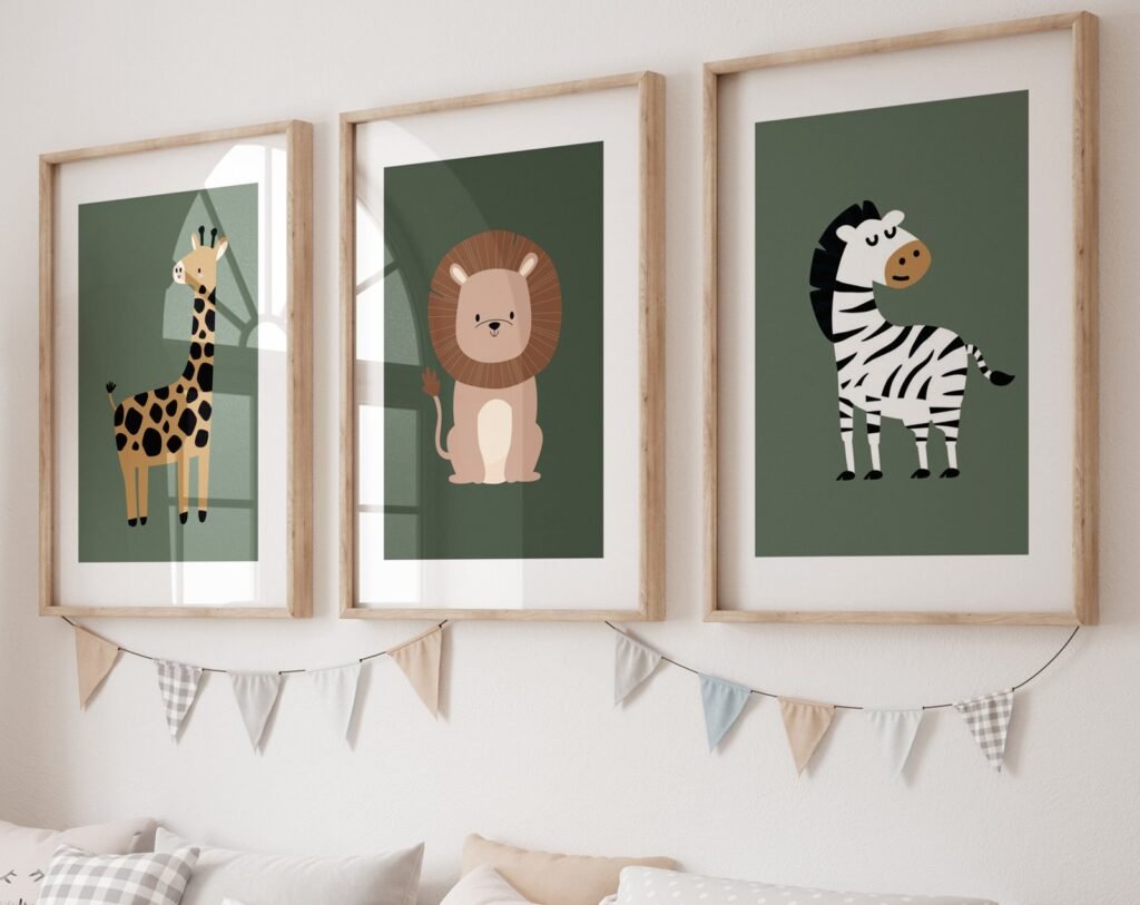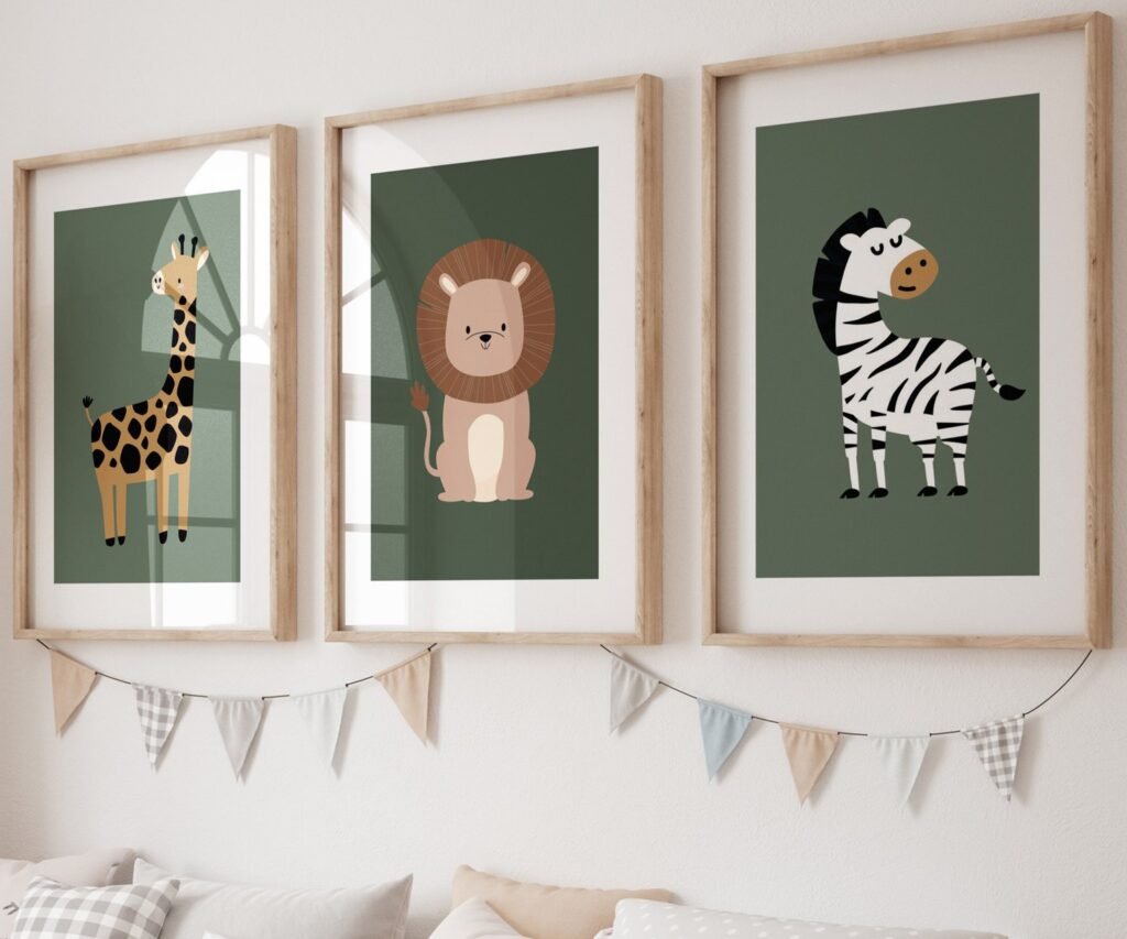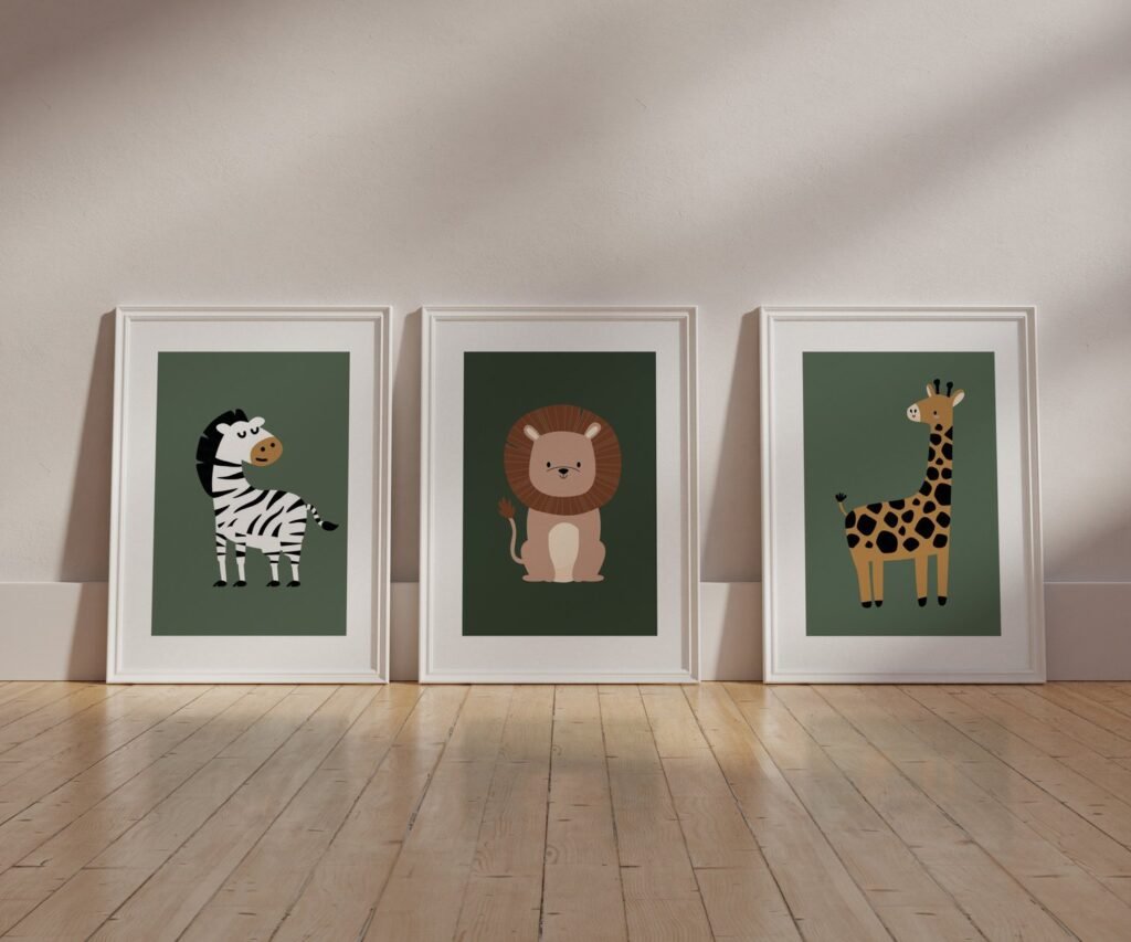 Our Safari animals, Green Nursery Prints, Set of 3, soothing colors, and heartwarming quotes that are bound to bring joy and comfort to your baby’s room. Each print is thoughtfully crafted to add a touch of magic and wonder, making it an ideal gift for new parents or a special treat for your own bundle of joy.