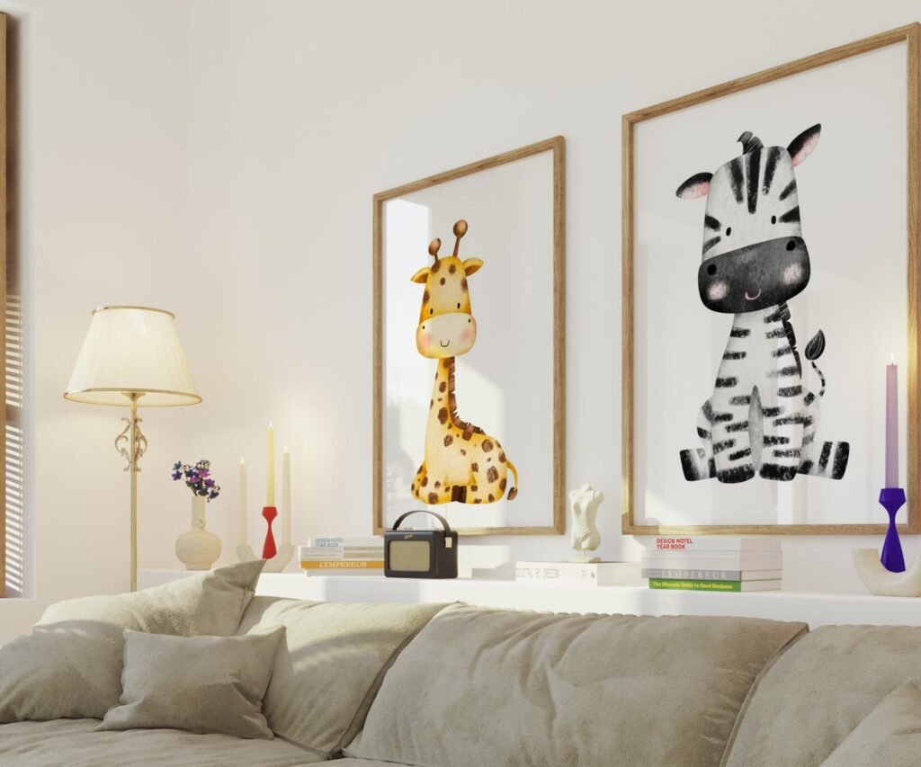 Our Safari Nursery, Baby animals, zebra elephant giraffe set of 2, soothing colors, and heartwarming quotes that are bound to bring joy and comfort to your baby’s room. Each print is thoughtfully crafted to add a touch of magic and wonder, making it an ideal gift for new parents or a special treat for your own bundle of joy.