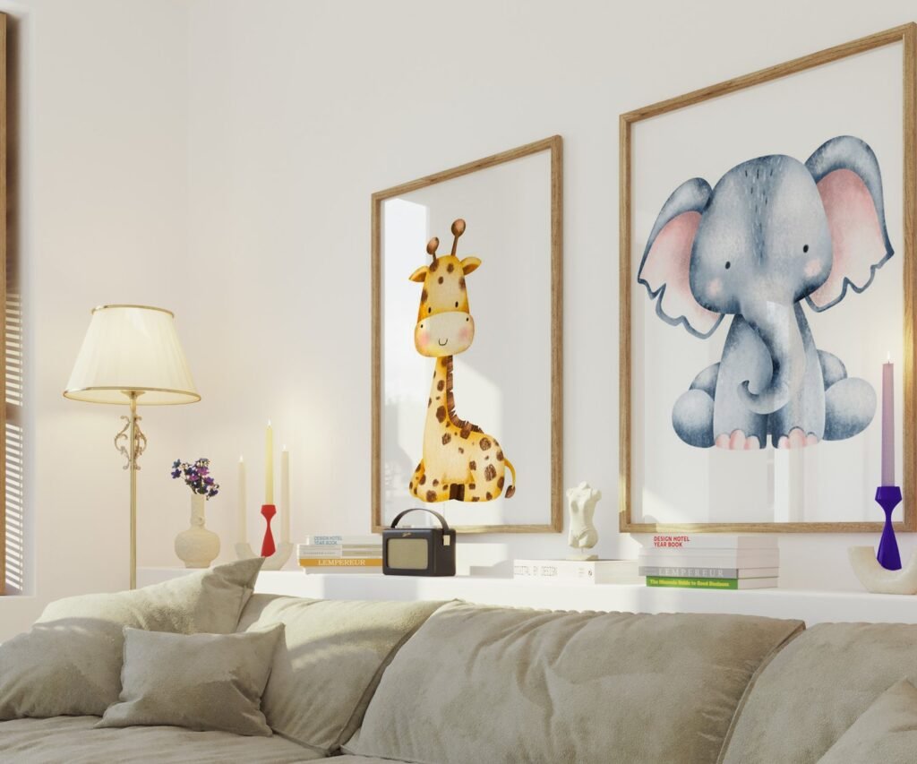 Our Safari Nursery, Baby animals, zebra elephant giraffe set of 2, soothing colors, and heartwarming quotes that are bound to bring joy and comfort to your baby’s room. Each print is thoughtfully crafted to add a touch of magic and wonder, making it an ideal gift for new parents or a special treat for your own bundle of joy.