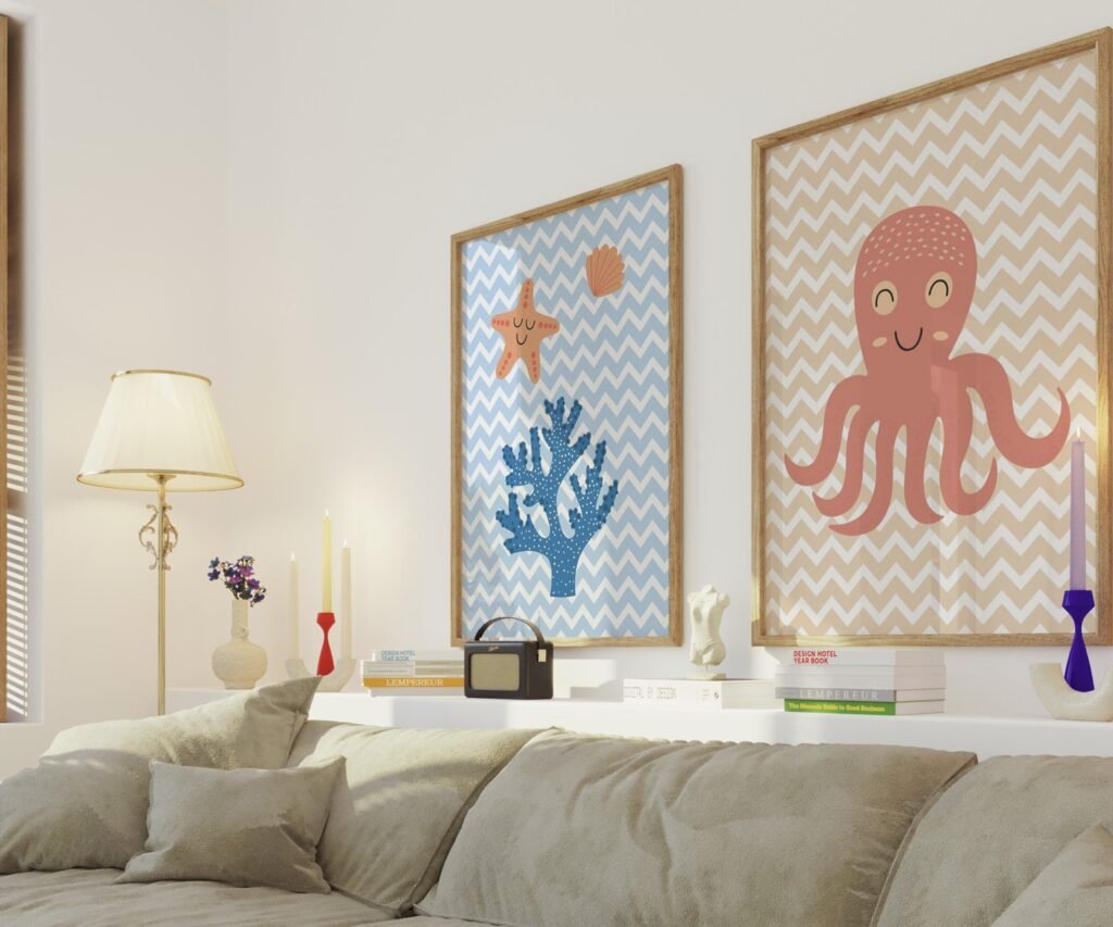 Our Sea animals, Ocean, Fish Whale set of 2, soothing colors, and heartwarming quotes that are bound to bring joy and comfort to your baby’s room. Each print is thoughtfully crafted to add a touch of magic and wonder, making it an ideal gift for new parents or a special treat for your own bundle of joy.