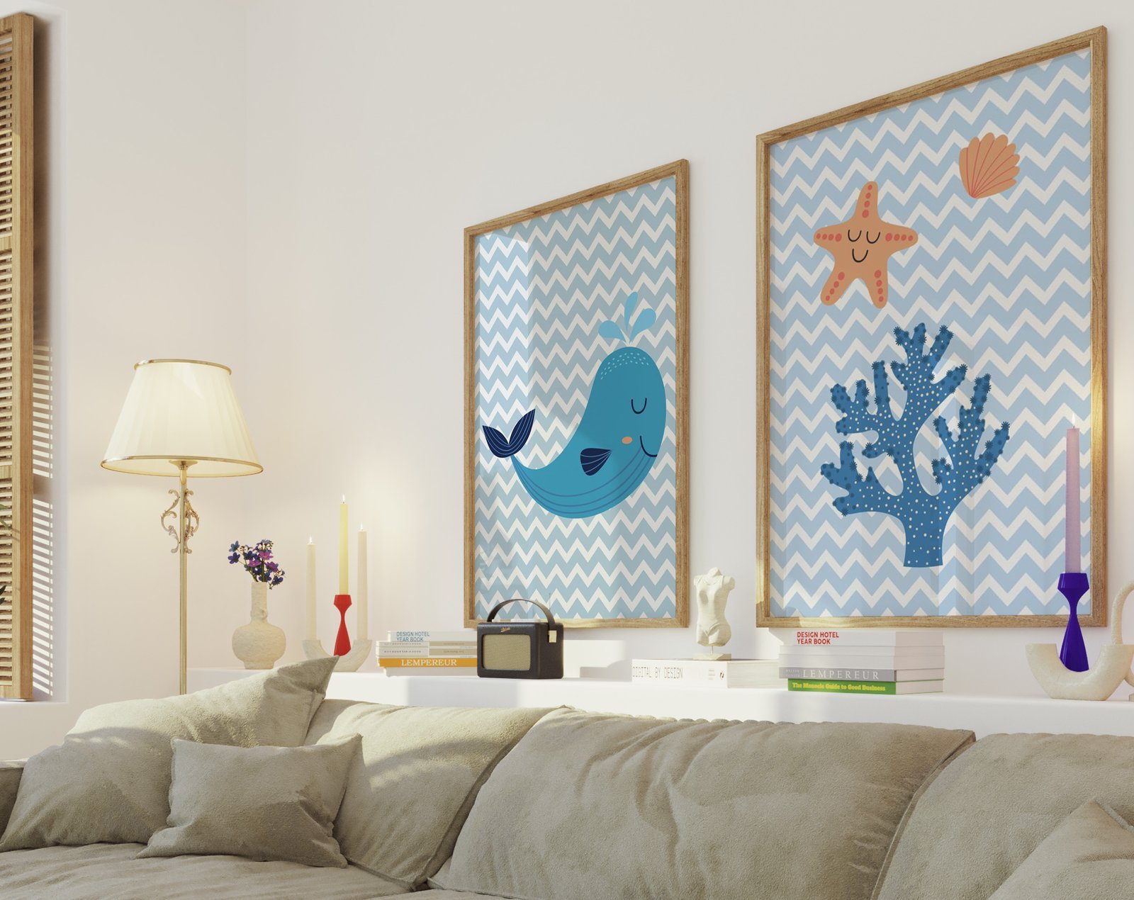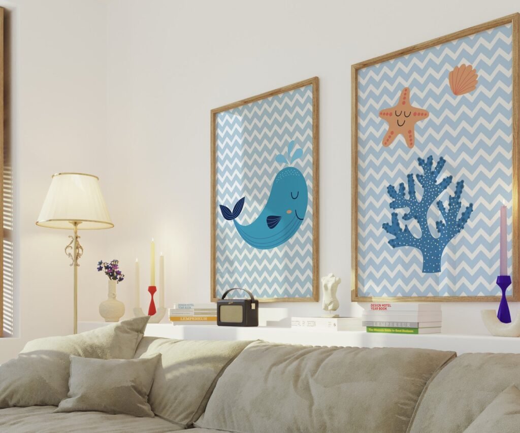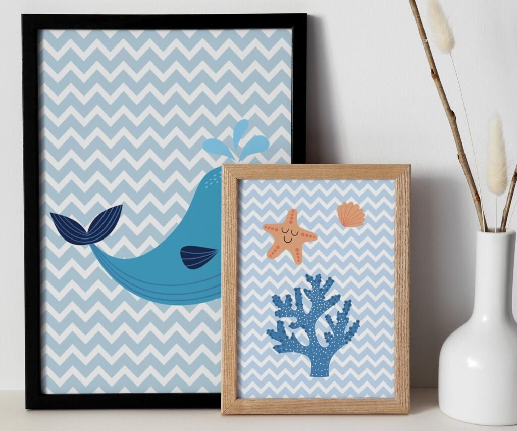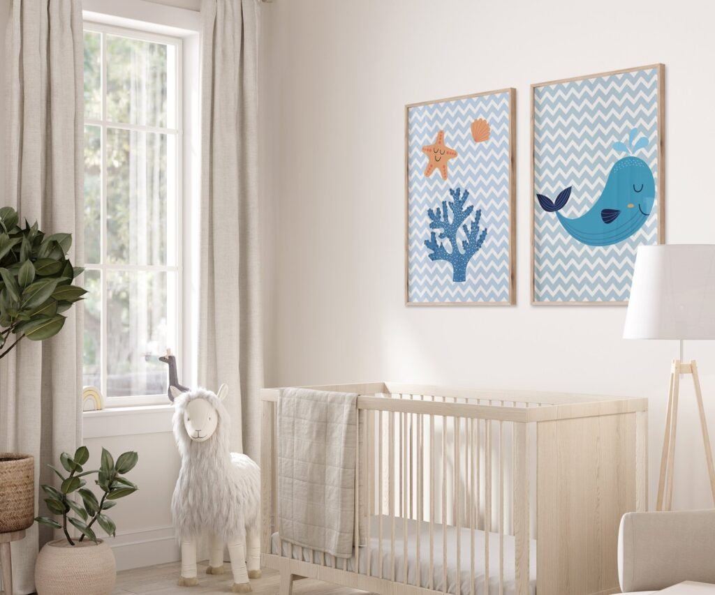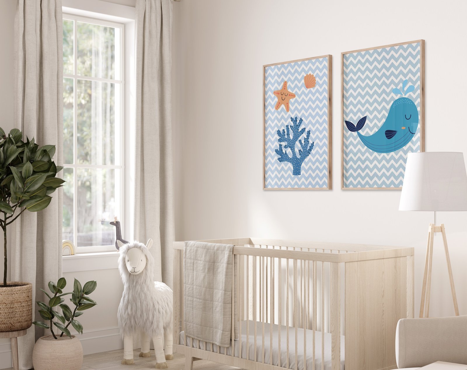 Our Sea animals, Ocean, Fish Whale set of 2, soothing colors, and heartwarming quotes that are bound to bring joy and comfort to your baby’s room. Each print is thoughtfully crafted to add a touch of magic and wonder, making it an ideal gift for new parents or a special treat for your own bundle of joy.