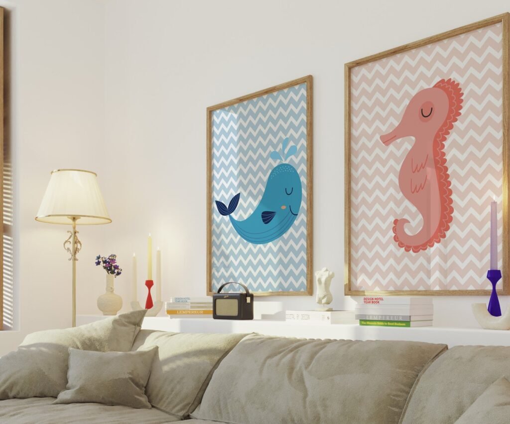 Our Sea animals, Ocean, Fish Whale set of 2, soothing colors, and heartwarming quotes that are bound to bring joy and comfort to your baby’s room. Each print is thoughtfully crafted to add a touch of magic and wonder, making it an ideal gift for new parents or a special treat for your own bundle of joy.