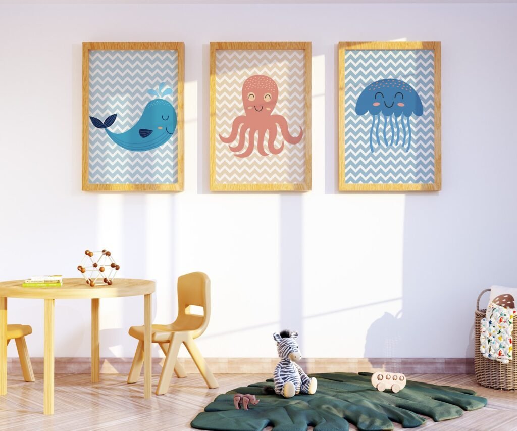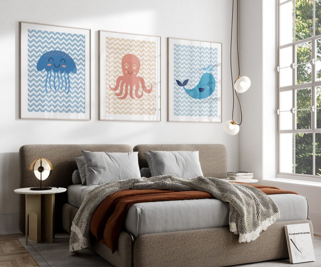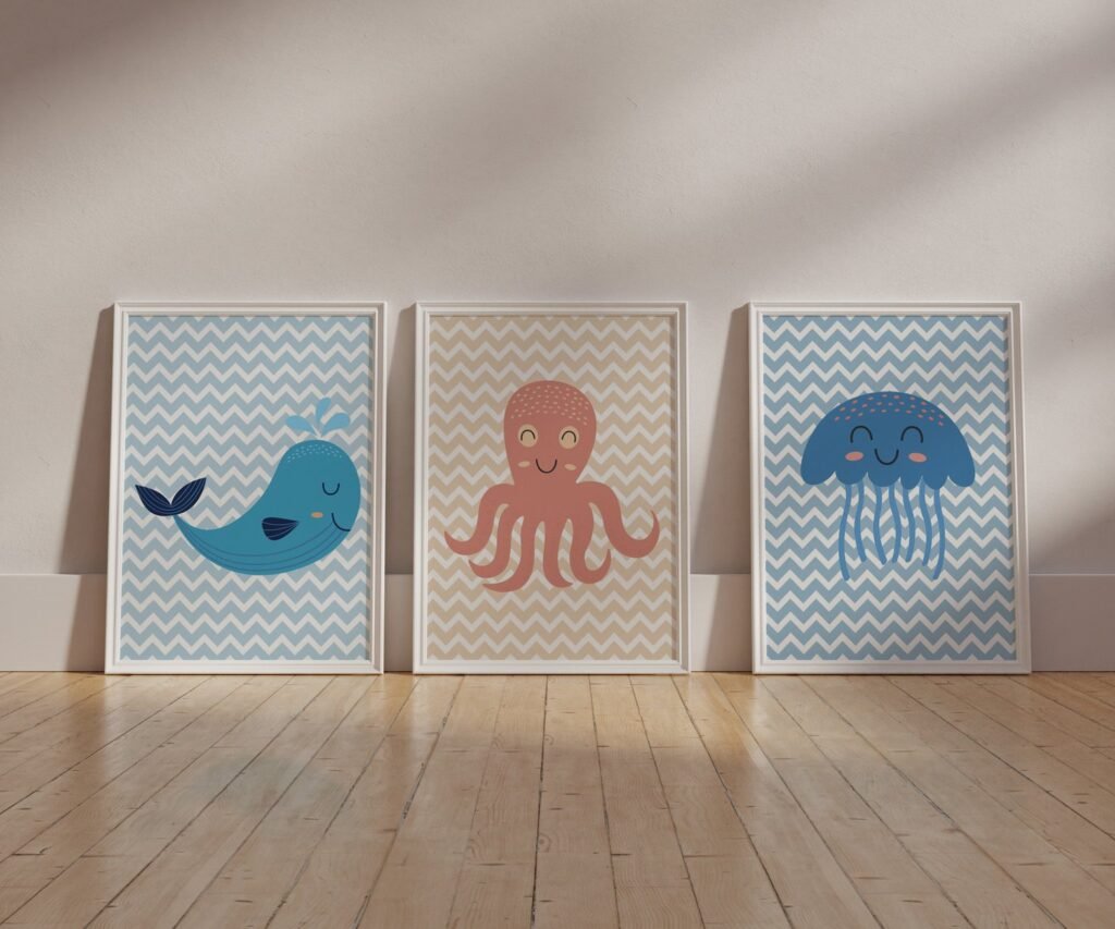 Our Sea animals, Ocean, Fish Whale set of 3, soothing colors, and heartwarming quotes that are bound to bring joy and comfort to your baby’s room. Each print is thoughtfully crafted to add a touch of magic and wonder, making it an ideal gift for new parents or a special treat for your own bundle of joy.