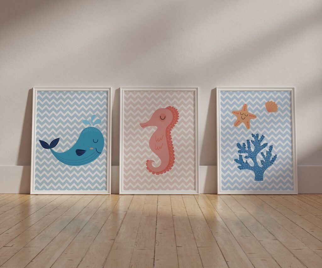 Our Sea animals, Ocean, Fish Whale set of 3, soothing colors, and heartwarming quotes that are bound to bring joy and comfort to your baby’s room. Each print is thoughtfully crafted to add a touch of magic and wonder, making it an ideal gift for new parents or a special treat for your own bundle of joy.