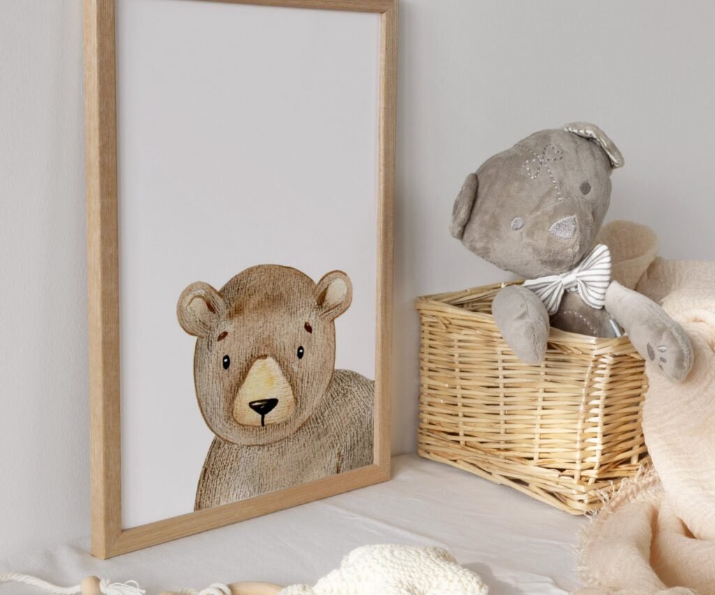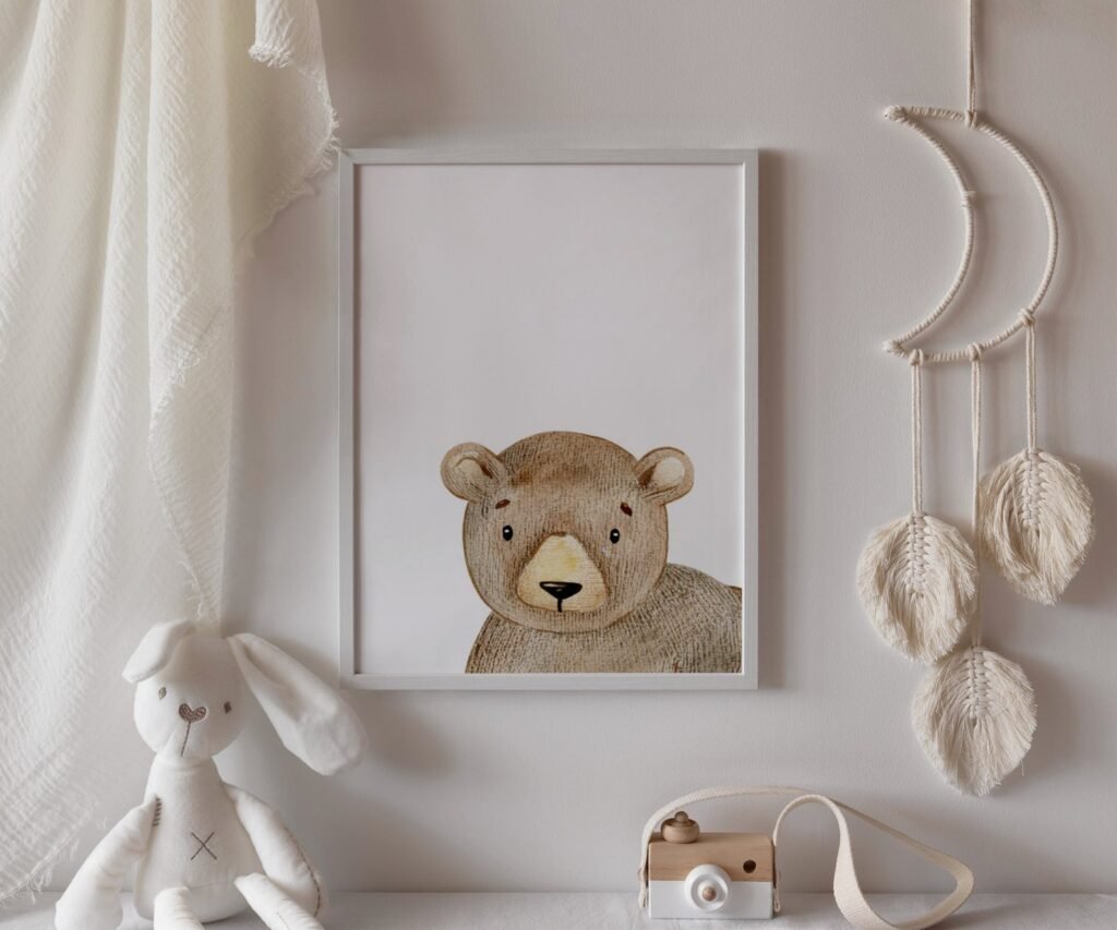 Our set of 1 bear peeking Painting Wall Poster Watercolor Art decor Print Pet Drawing portrait gig funny room nursery baby gig, soothing colors, and heartwarming quotes that are bound to bring joy and comfort to your baby’s room. Each print is thoughtfully crafted to add a touch of magic and wonder, making it an ideal gift for new parents or a special treat for your own bundle of joy.
