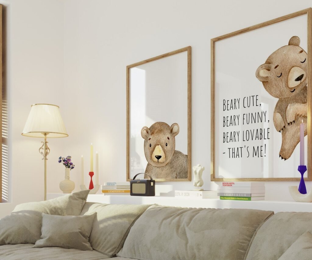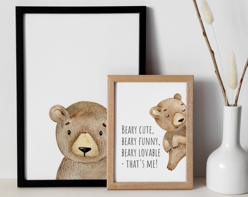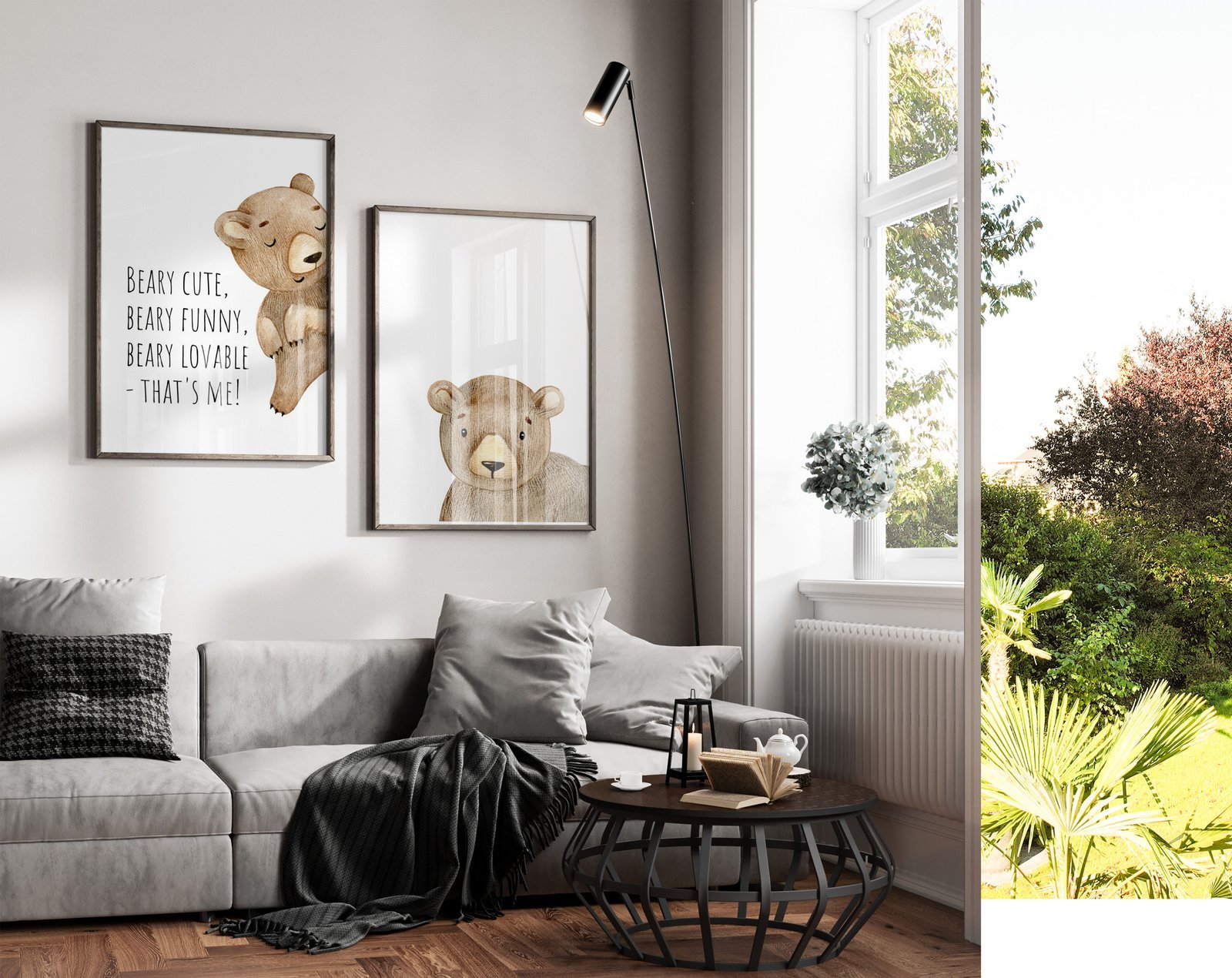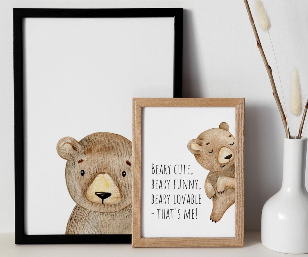Our set of 2 bear peeking Painting Wall Poster Watercolor Art decor Print Pet Drawing portrait gig funny room nursery baby gig, soothing colors, and heartwarming quotes that are bound to bring joy and comfort to your baby’s room. Each print is thoughtfully crafted to add a touch of magic and wonder, making it an ideal gift for new parents or a special treat for your own bundle of joy.