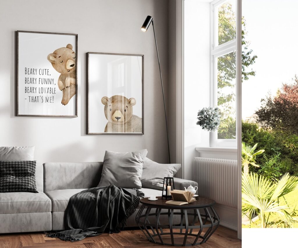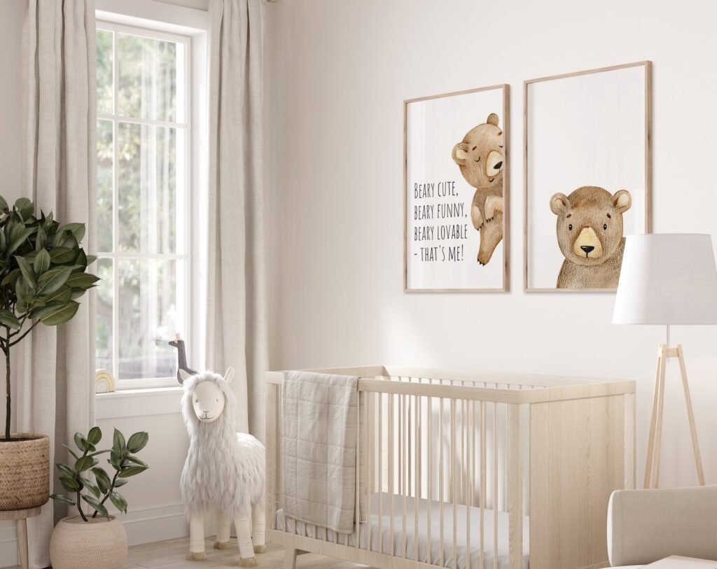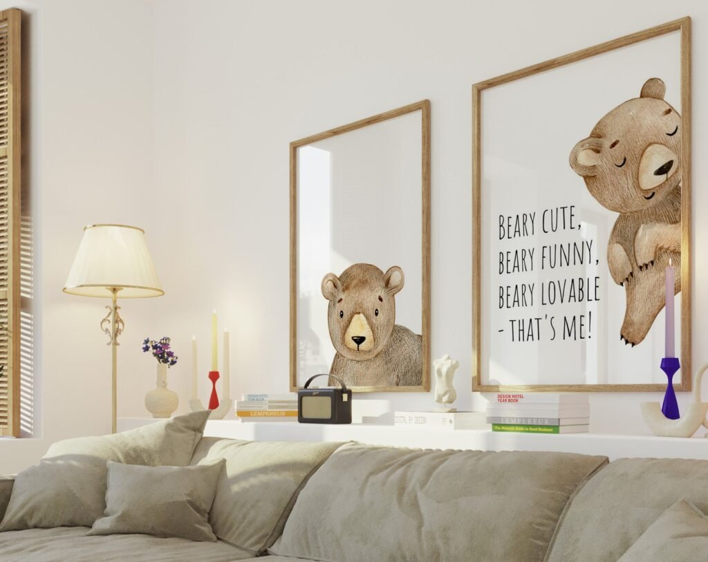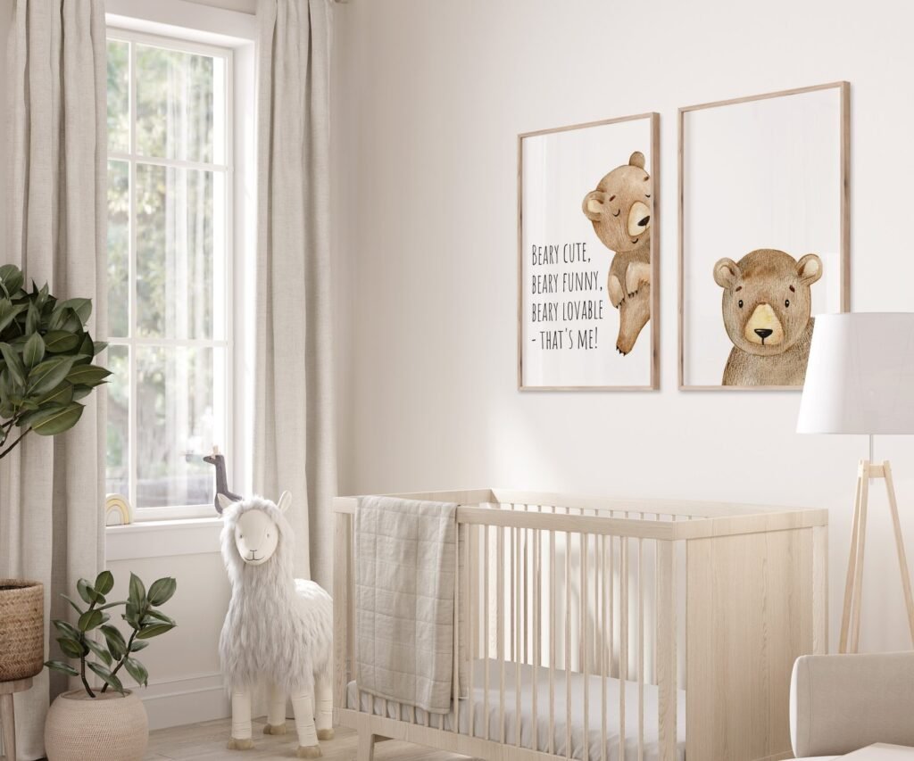 Our set of 2 bear peeking Painting Wall Poster Watercolor Art decor Print Pet Drawing portrait gig funny room nursery baby gig, soothing colors, and heartwarming quotes that are bound to bring joy and comfort to your baby’s room. Each print is thoughtfully crafted to add a touch of magic and wonder, making it an ideal gift for new parents or a special treat for your own bundle of joy.