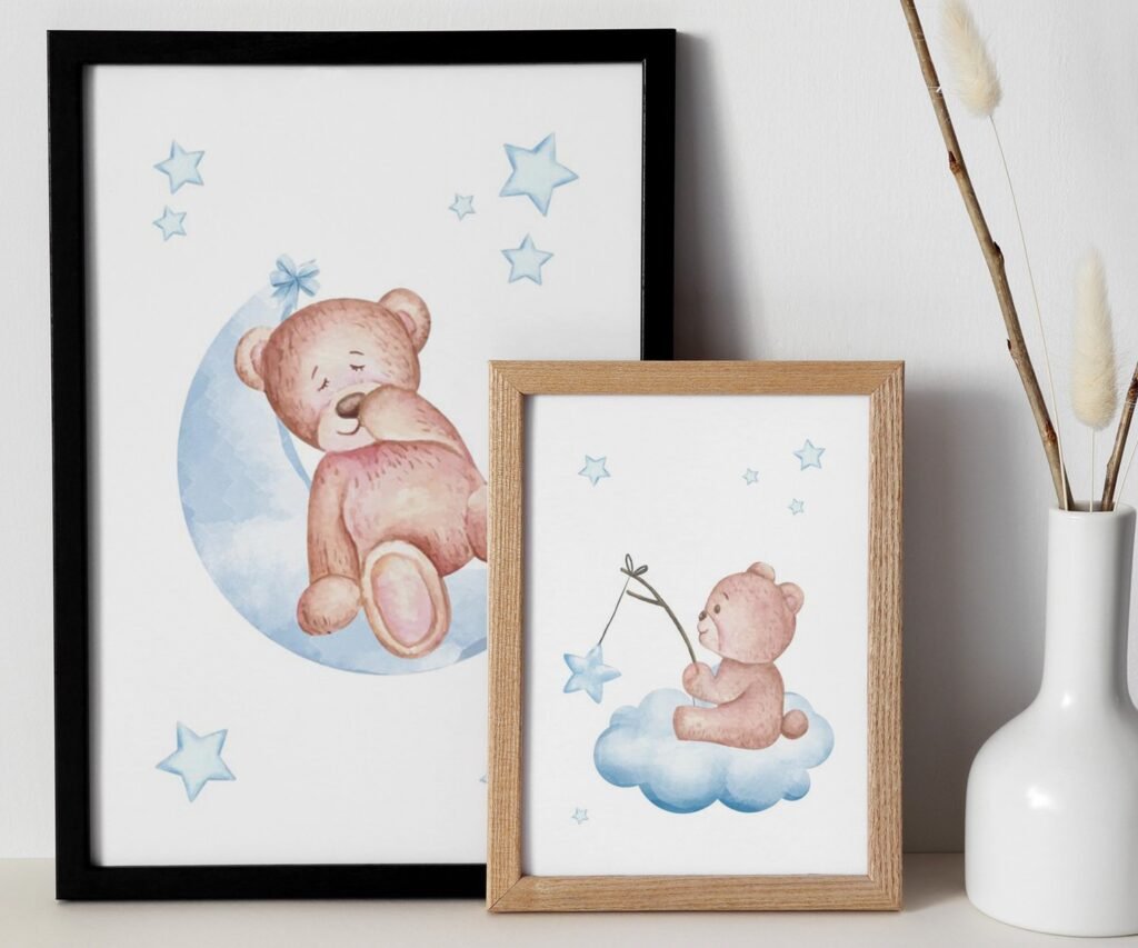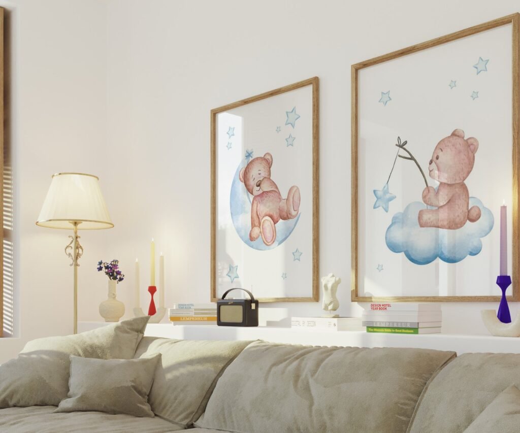 Our set of 2 Bear Print Nursery, Light Blue Ballon set of 2, soothing colors, and heartwarming quotes that are bound to bring joy and comfort to your baby’s room. Each print is thoughtfully crafted to add a touch of magic and wonder, making it an ideal gift for new parents or a special treat for your own bundle of joy.