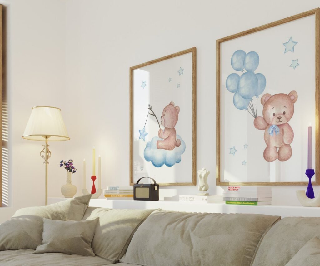 Our set of 2 Bear Print Nursery, Light Blue Ballon set of 2, soothing colors, and heartwarming quotes that are bound to bring joy and comfort to your baby’s room. Each print is thoughtfully crafted to add a touch of magic and wonder, making it an ideal gift for new parents or a special treat for your own bundle of joy.