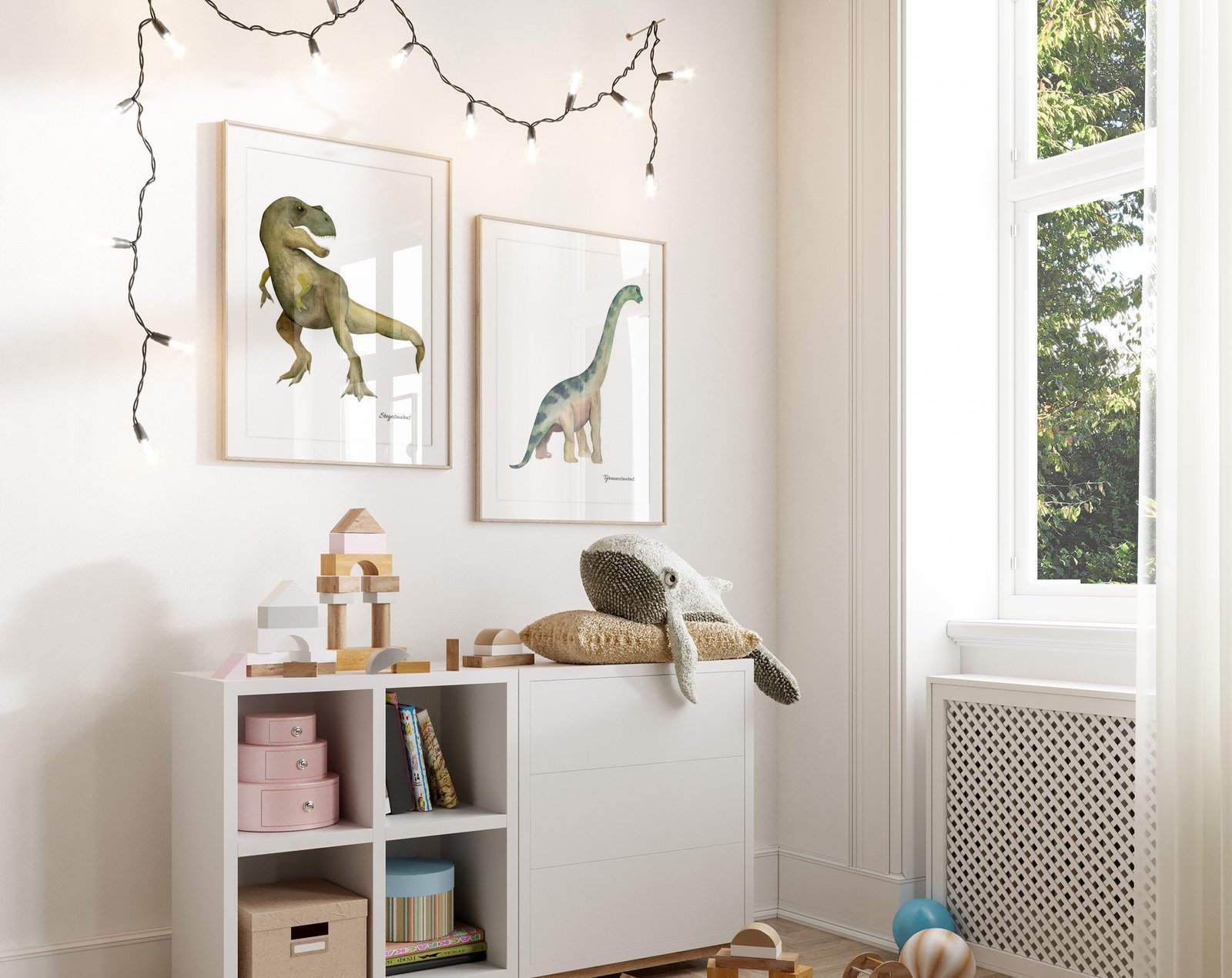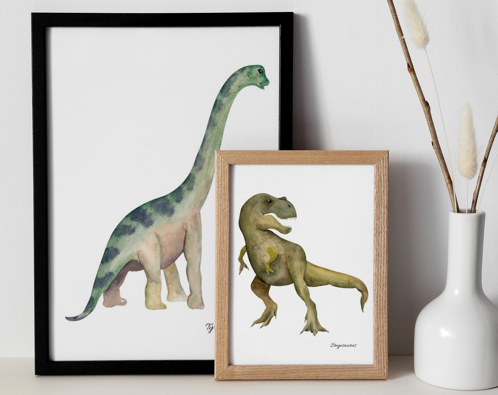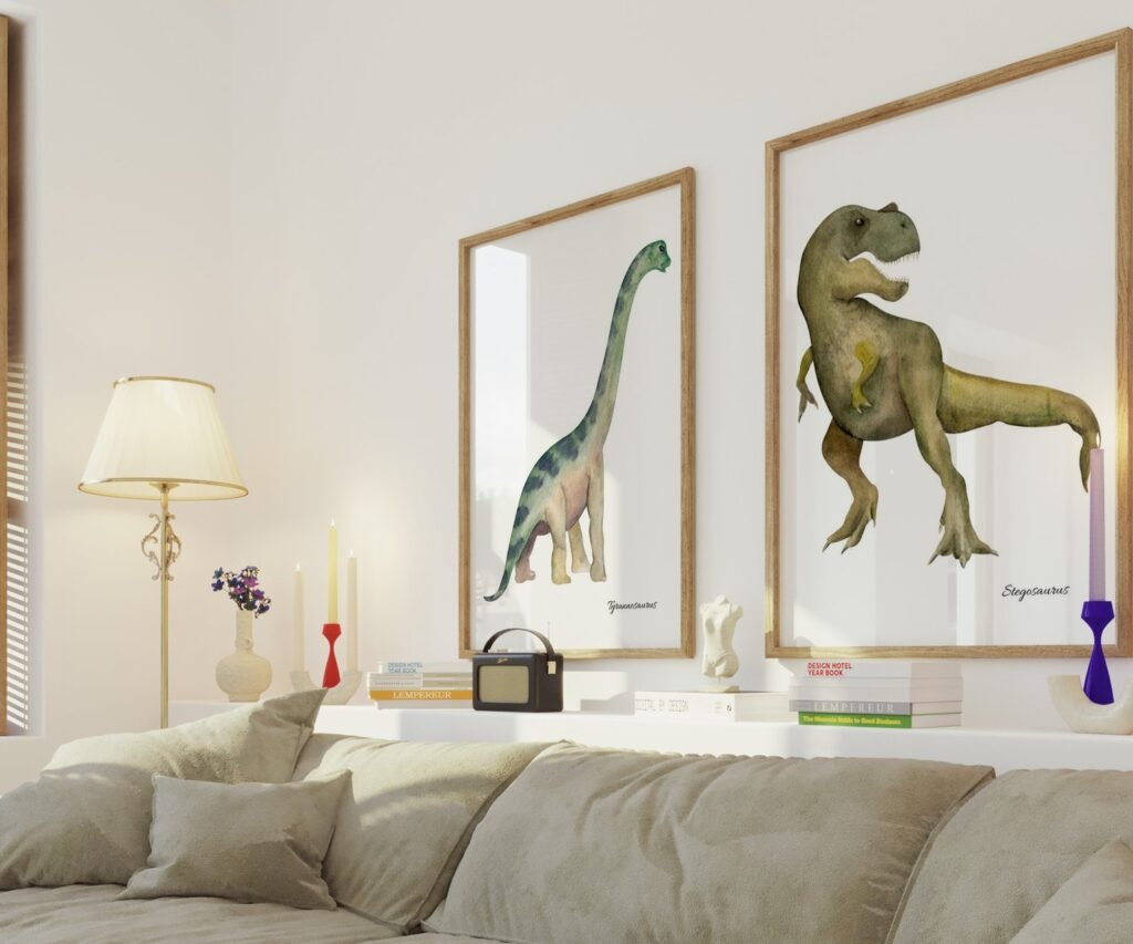 set of 2 Dinosaur Art Prints, Kids Gallery Wall Set, Dinosaur Wall Art, Dinosaur Nursery, Boys Room Dinosaur Decor, Kids Room Wall Art Dinos