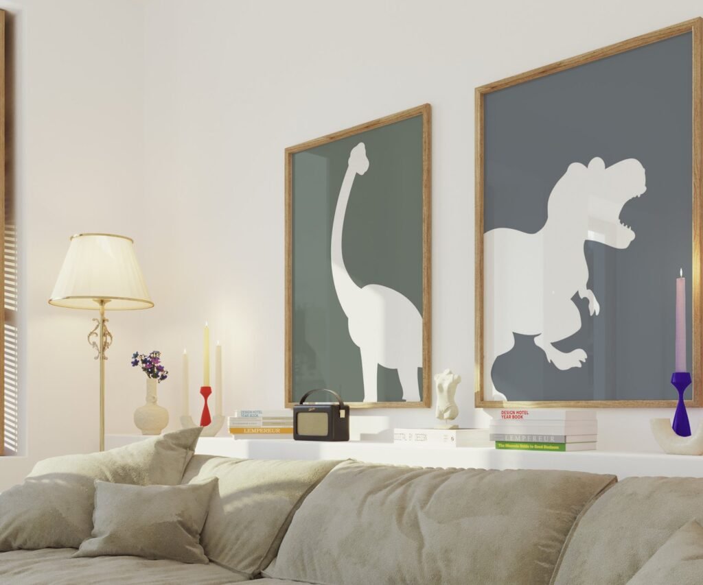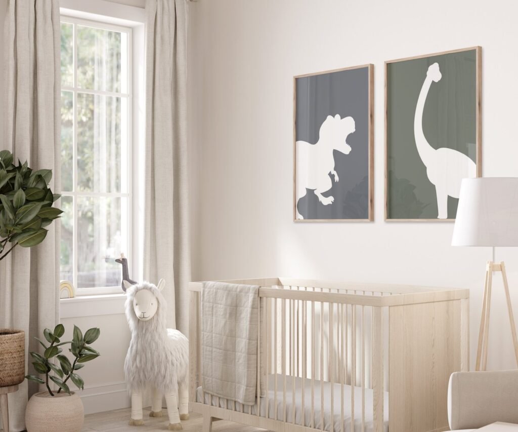 set of 2 Dinosaur Prints, T-Rex Print, Triceratops Poster, Brachiosaurus, Dinosaur Wall Decor, Baby Boy Decor