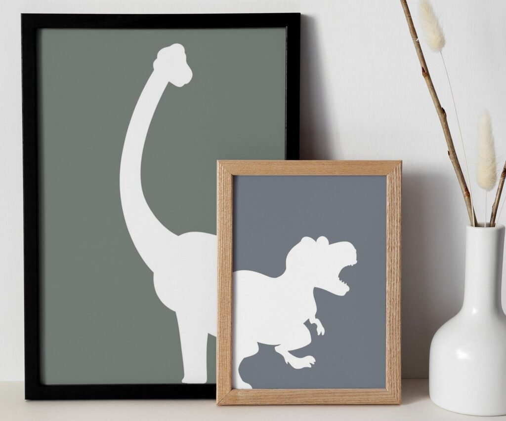 set of 2 Dinosaur Prints, T-Rex Print, Triceratops Poster, Brachiosaurus, Dinosaur Wall Decor, Baby Boy Decor