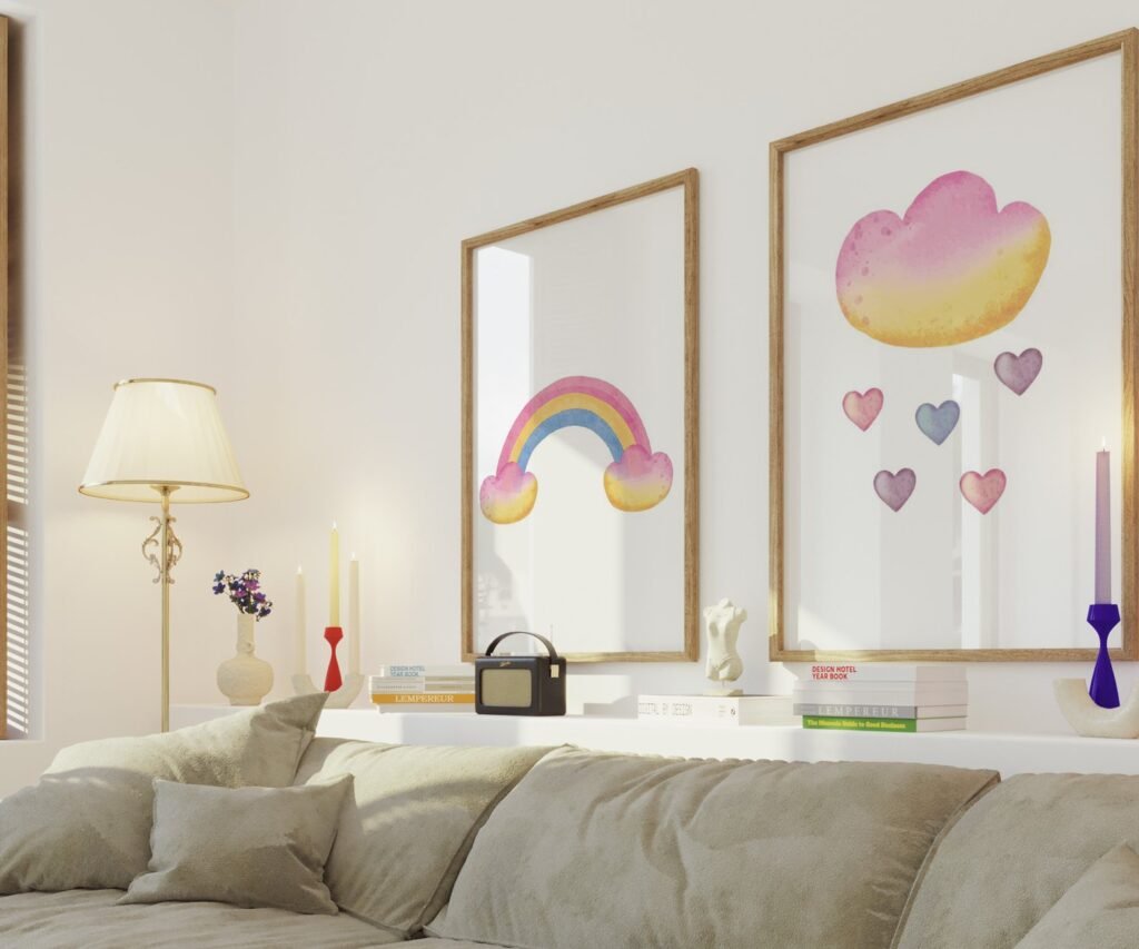 set of 2 Unicorn wall art set, Printable unicorn art, Girls room decor, Unicorn gold glitter, Unicorn prints,cloud rainbow
