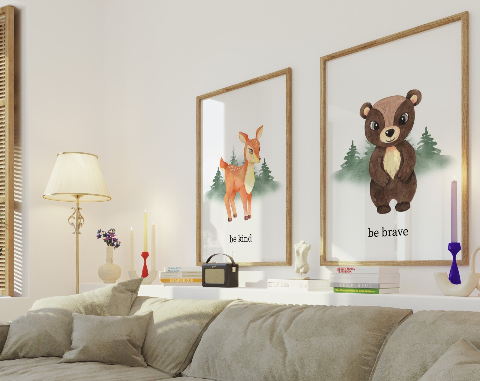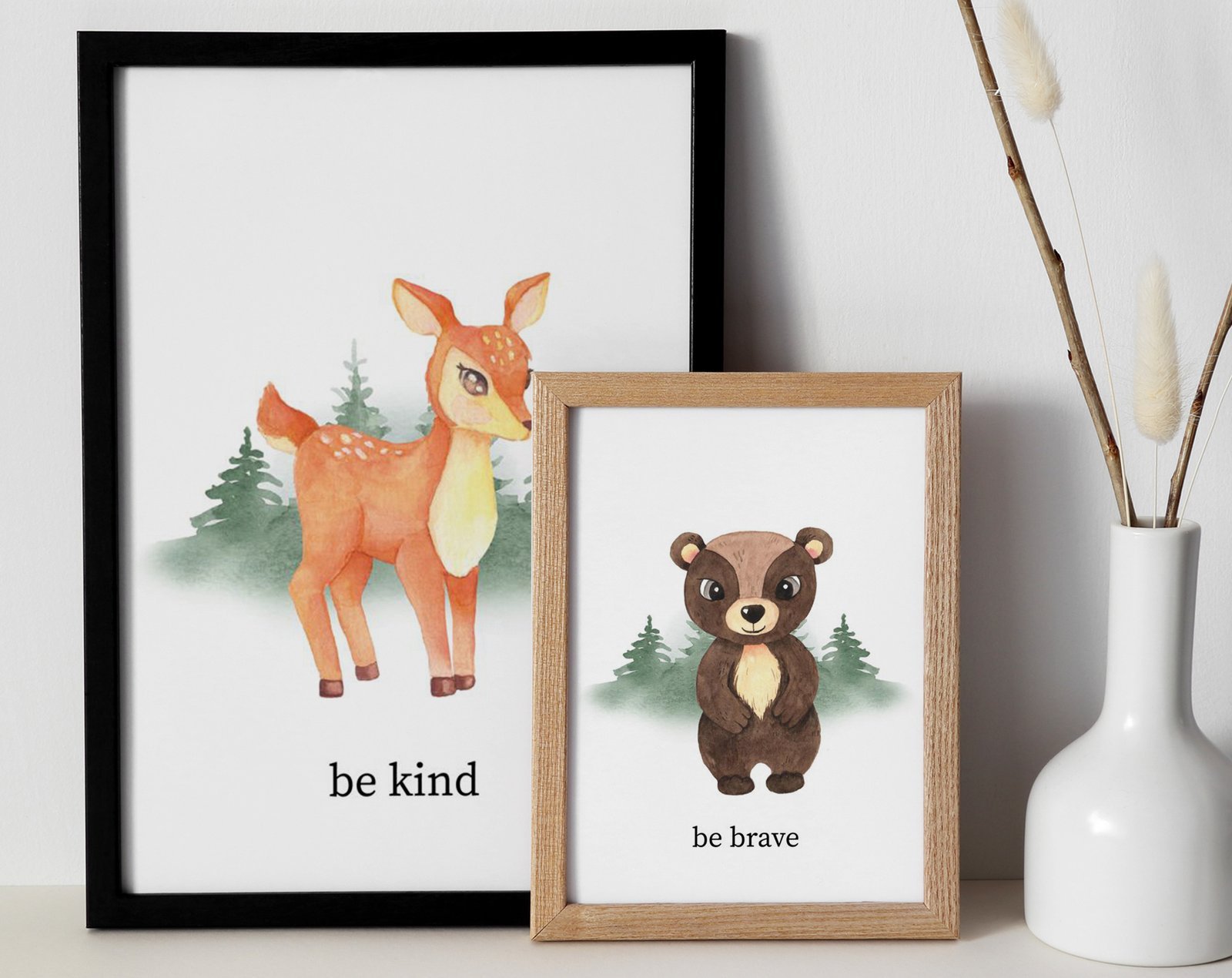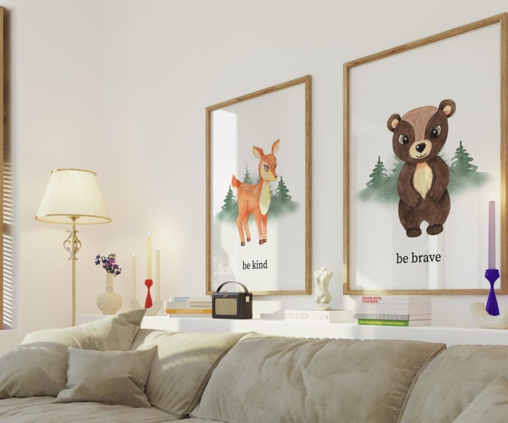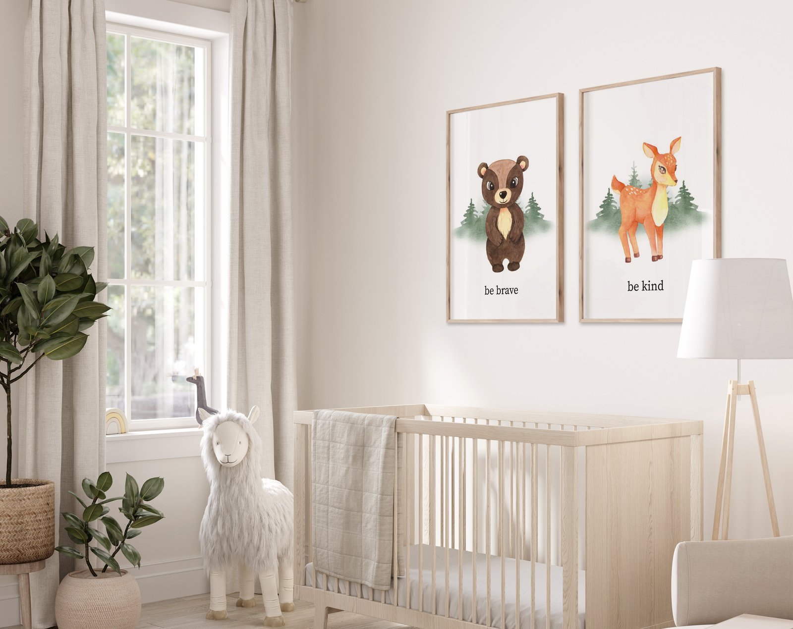 Our set of 2 Woodland Nursery wall art, Bear Wall art, Forest nursery- Nursery Prints Watercolor Woodland, soothing colors, and heartwarming quotes that are bound to bring joy and comfort to your baby’s room. Each print is thoughtfully crafted to add a touch of magic and wonder, making it an ideal gift for new parents or a special treat for your own bundle of joy.