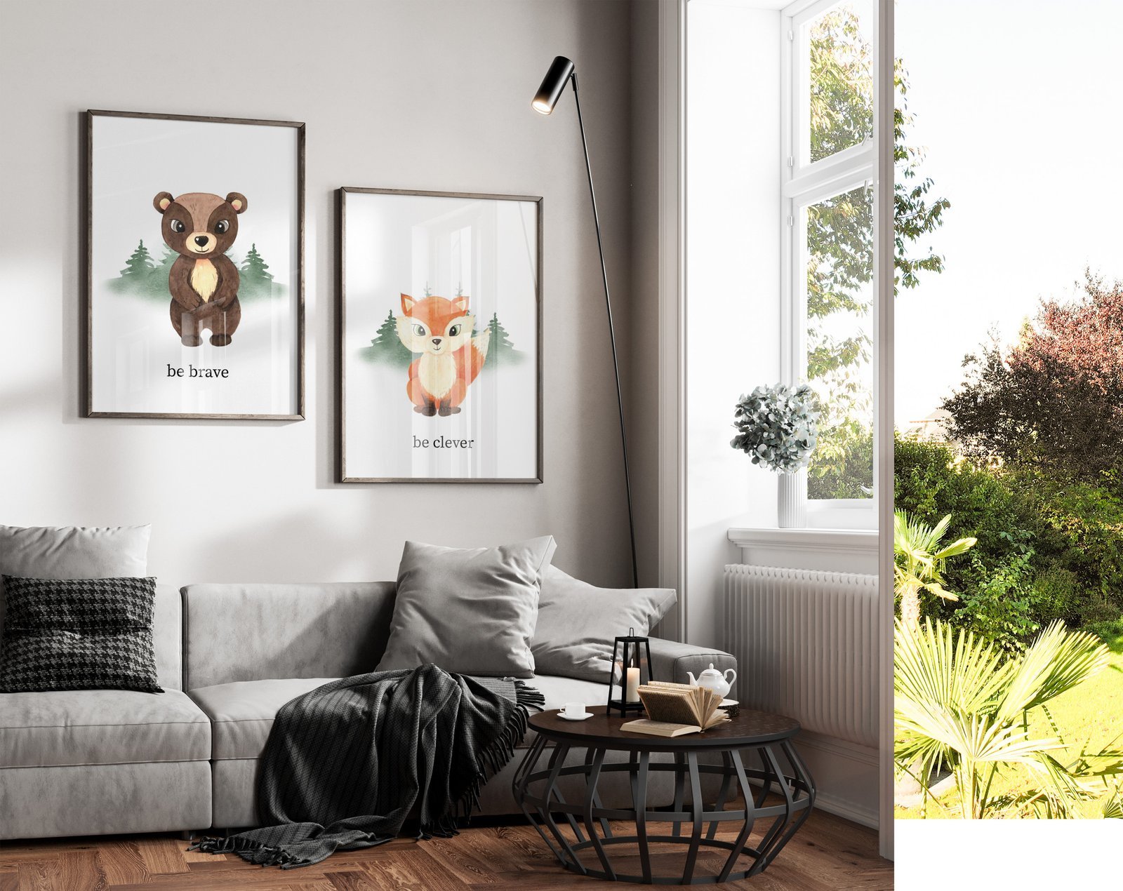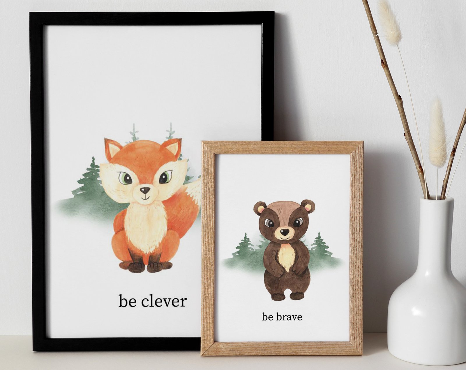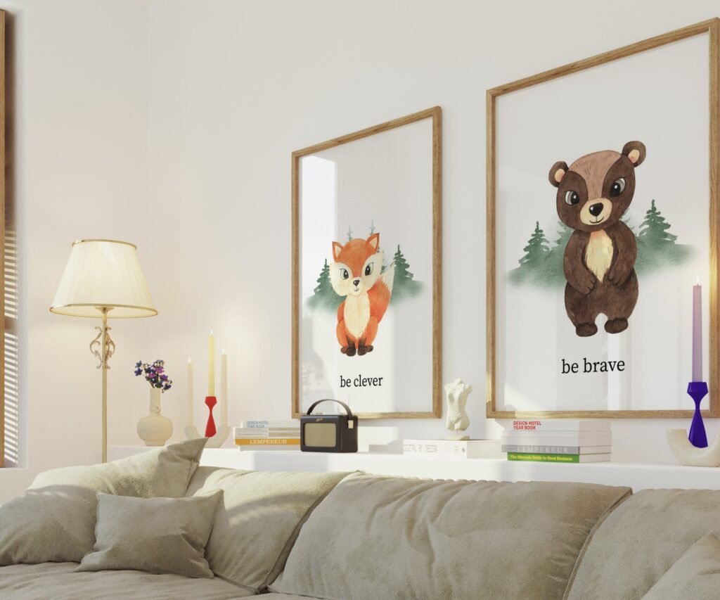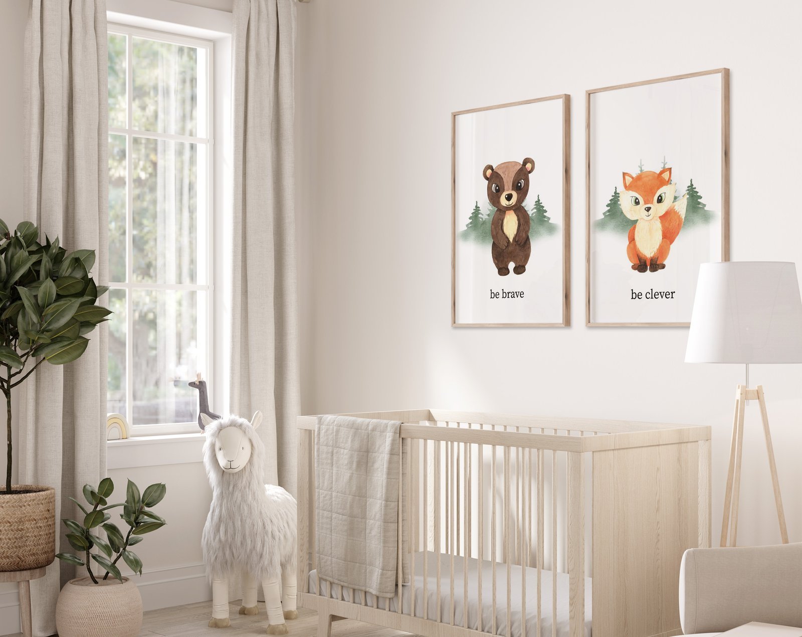 Our set of 2 Woodland Nursery wall art, Bear Wall art, Forest nursery- Nursery Prints Watercolor Woodland, soothing colors, and heartwarming quotes that are bound to bring joy and comfort to your baby’s room. Each print is thoughtfully crafted to add a touch of magic and wonder, making it an ideal gift for new parents or a special treat for your own bundle of joy.