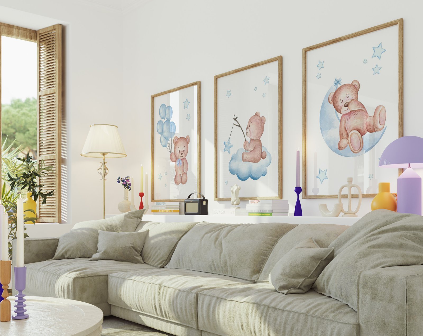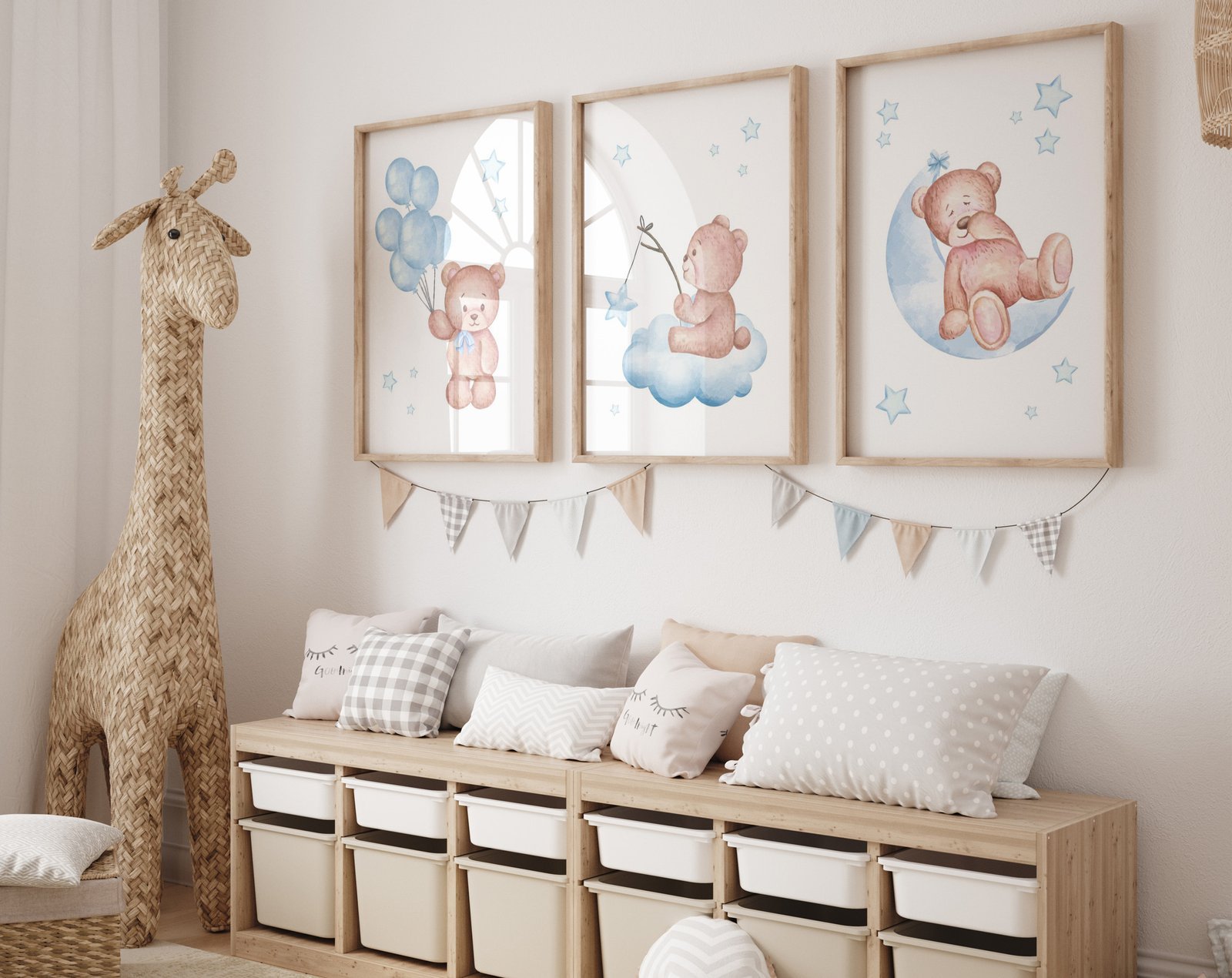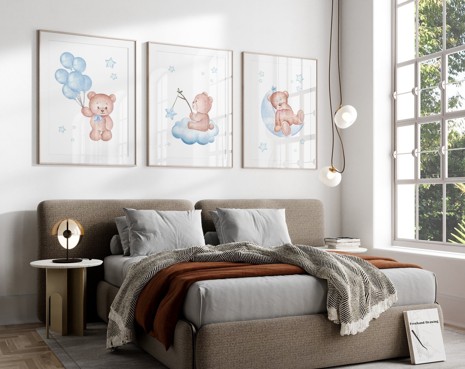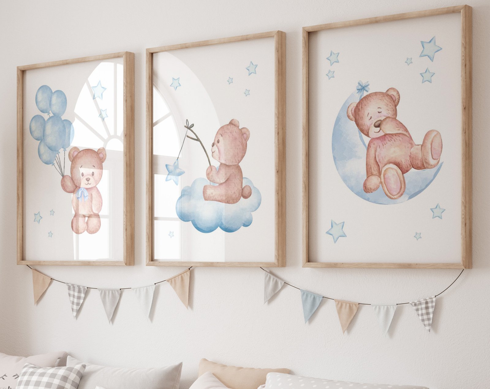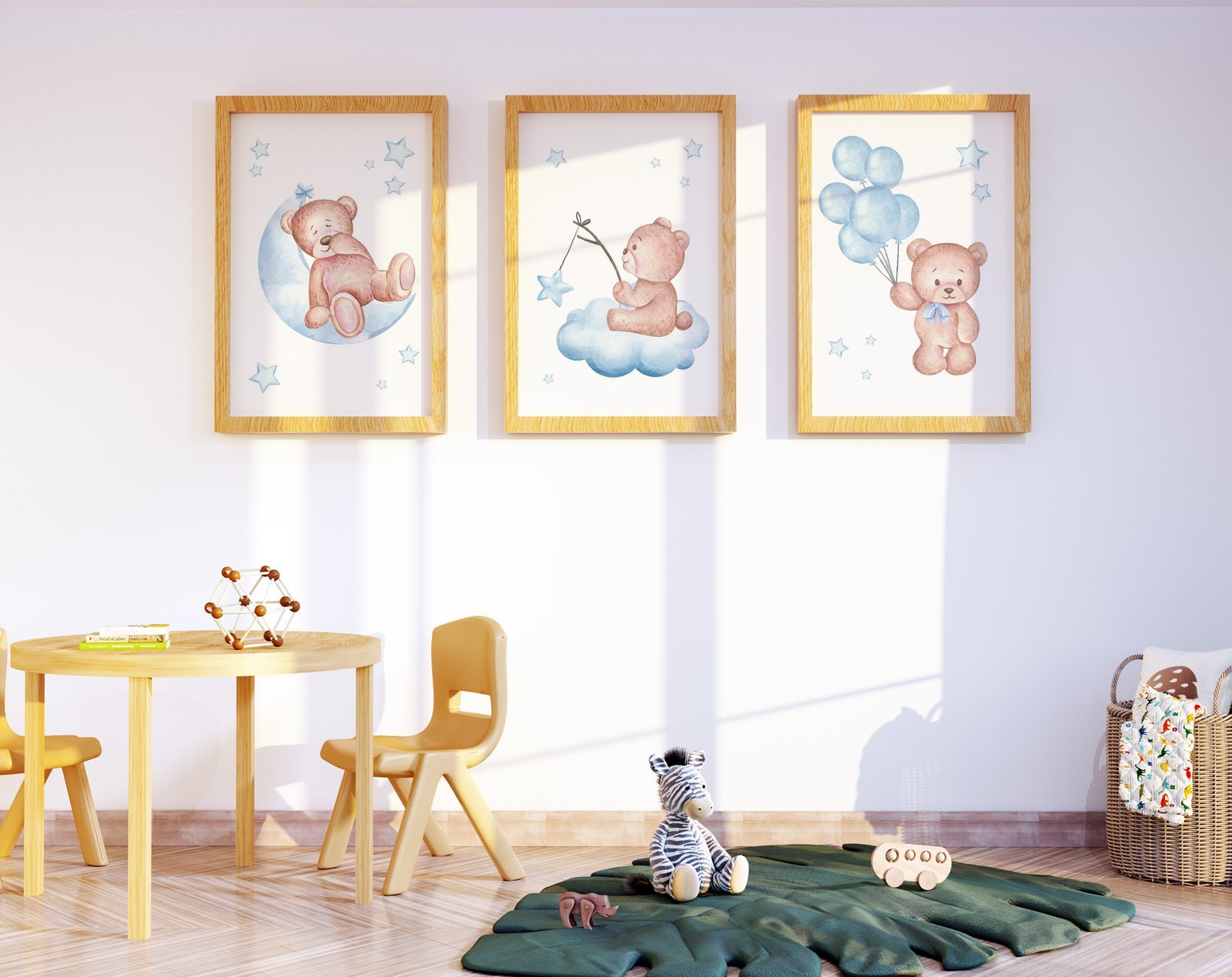 Our Set of 3 Bear Print Nursery, Light Blue Ballon set of 3, soothing colors, and heartwarming quotes that are bound to bring joy and comfort to your baby’s room. Each print is thoughtfully crafted to add a touch of magic and wonder, making it an ideal gift for new parents or a special treat for your own bundle of joy.