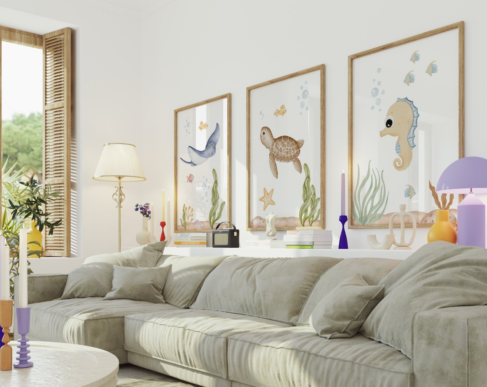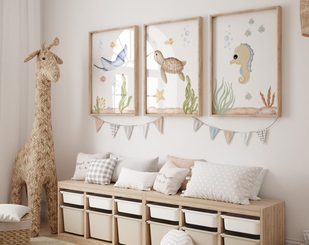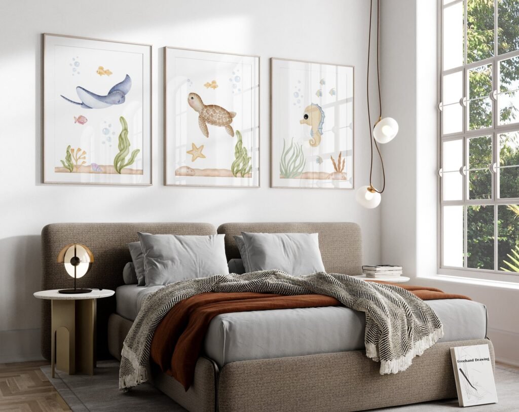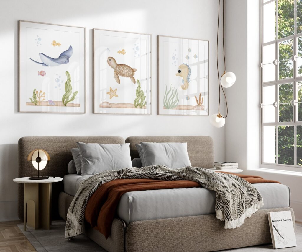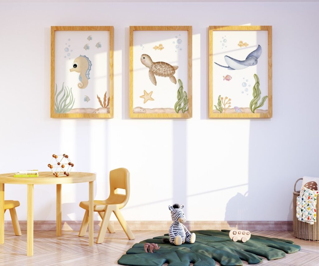 Our set of 3 Under the Sea Nursery Prints, Nautical Ocean Animal Posters, Boy Nursery Prints Set, Sea Animal Wall Art, Playroom Decor, soothing colors, and heartwarming quotes that are bound to bring joy and comfort to your baby’s room. Each print is thoughtfully crafted to add a touch of magic and wonder, making it an ideal gift for new parents or a special treat for your own bundle of joy.