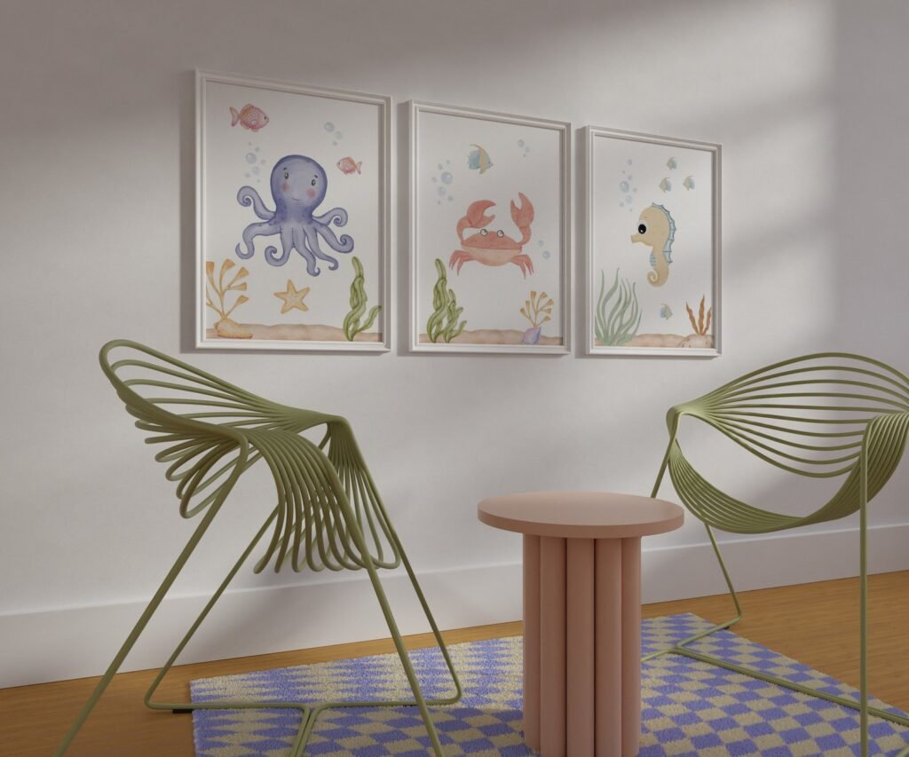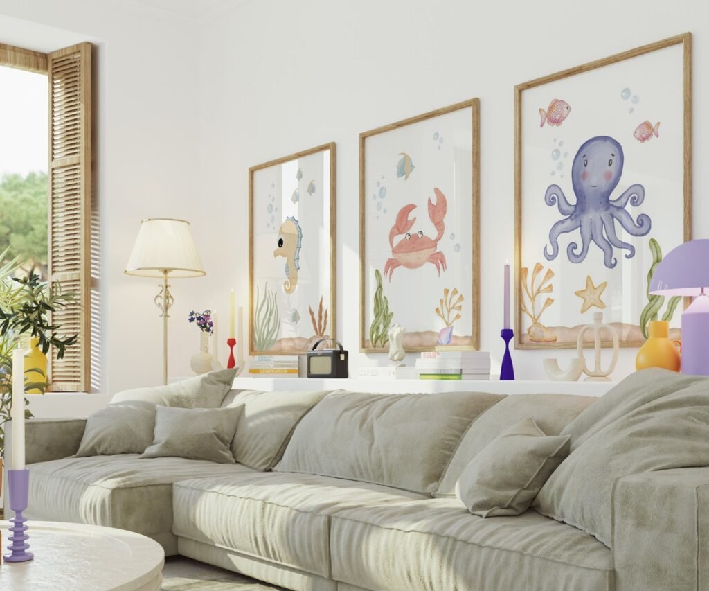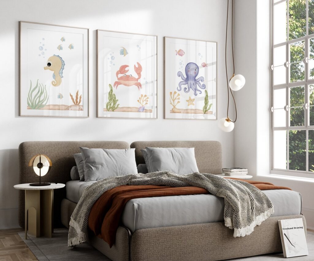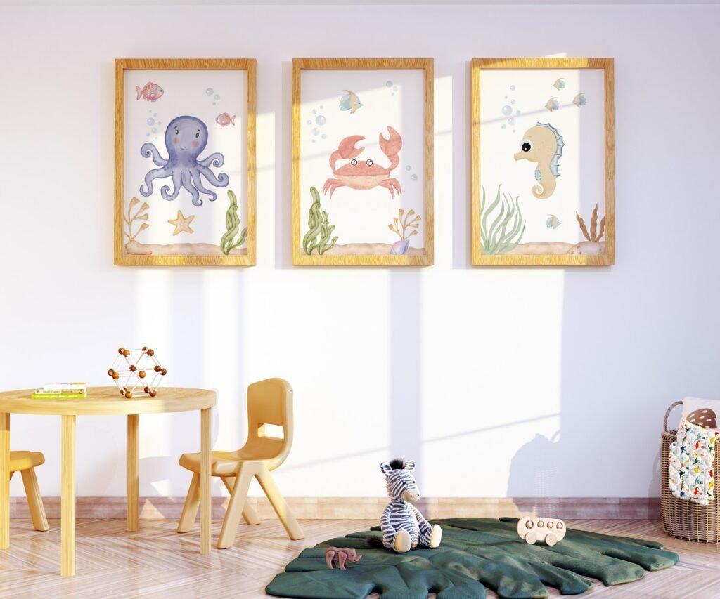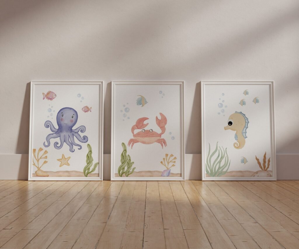 set of 3 Under the Sea Nursery Prints, Nautical Ocean Animal Posters, Boy Nursery Prints Set, Sea Animal Wall Art, Playroom Decor