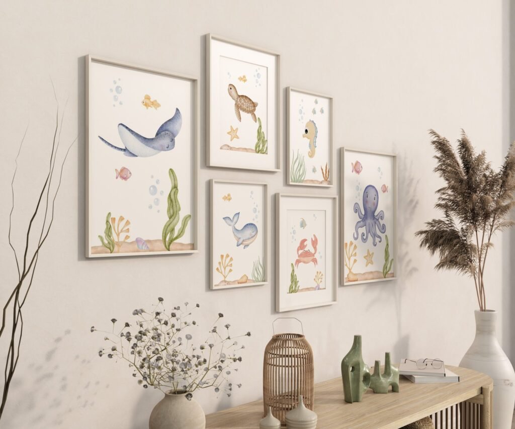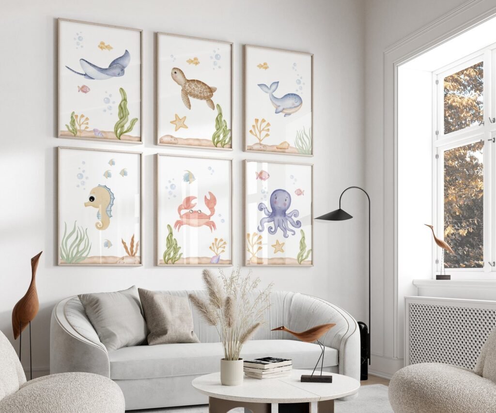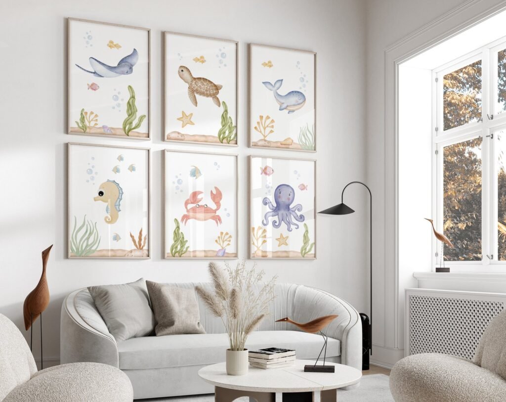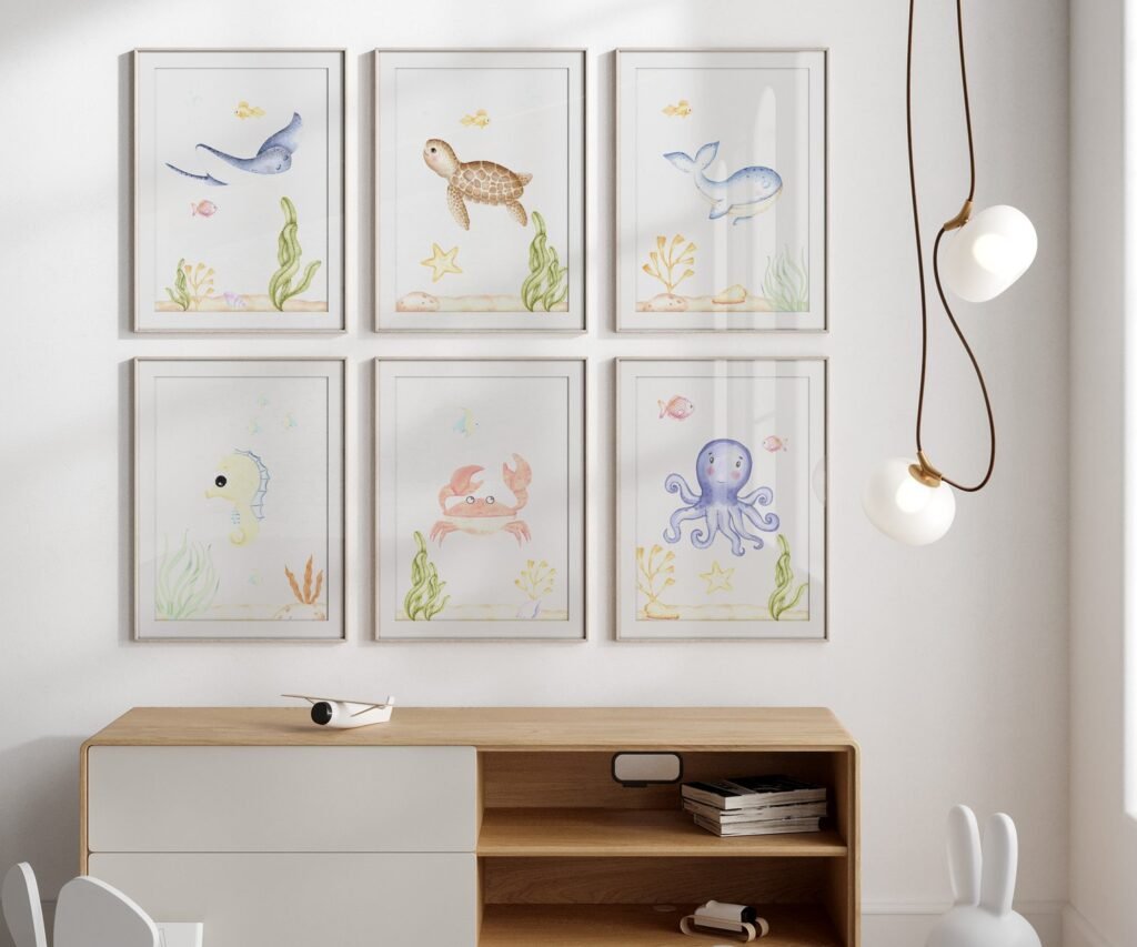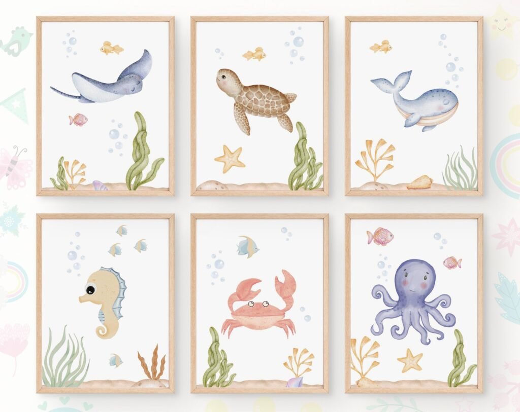 Our Set of 6 Under the Sea Nursery Prints, Nautical Ocean Animal Posters, Boy Nursery Prints Set, Sea Animal Wall Art, Playroom Decor, soothing colors, and heartwarming quotes that are bound to bring joy and comfort to your baby’s room. Each print is thoughtfully crafted to add a touch of magic and wonder, making it an ideal gift for new parents or a special treat for your own bundle of joy.