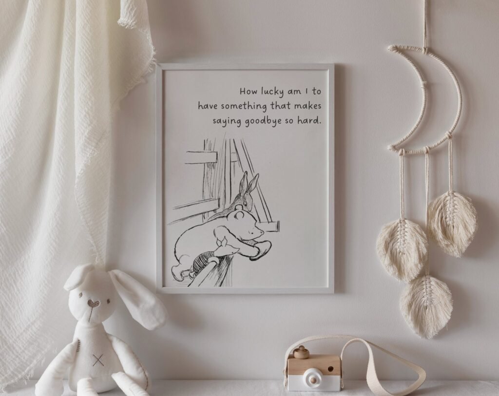 Our Winnie the Pooh Quote Prints, Black and White Pooh, set of 1, soothing colors, and heartwarming quotes that are bound to bring joy and comfort to your baby’s room. Each print is thoughtfully crafted to add a touch of magic and wonder, making it an ideal gift for new parents or a special treat for your own bundle of joy.