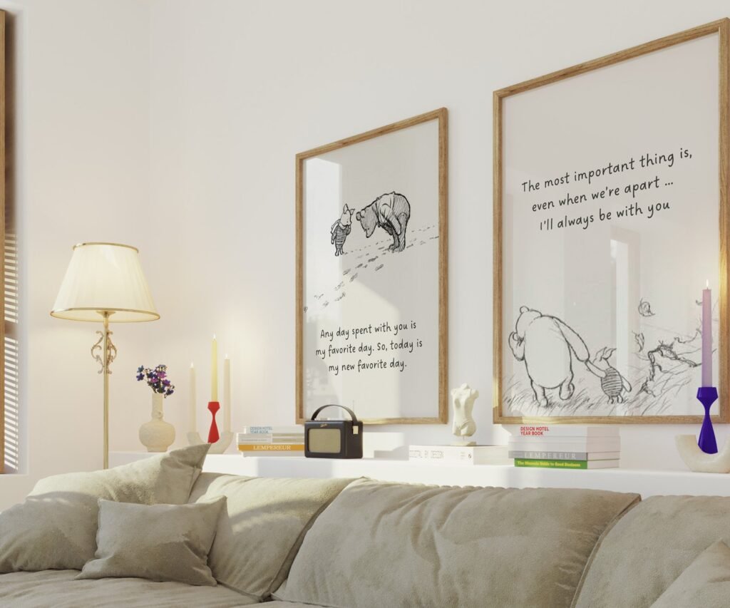 Our Winnie the Pooh Quote Prints, Black and White Pooh, set of 2, soothing colors, and heartwarming quotes that are bound to bring joy and comfort to your baby’s room. Each print is thoughtfully crafted to add a touch of magic and wonder, making it an ideal gift for new parents or a special treat for your own bundle of joy.