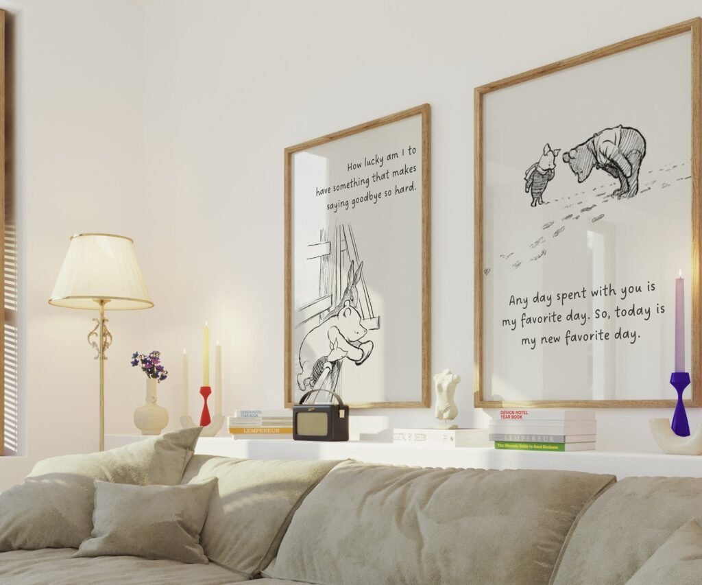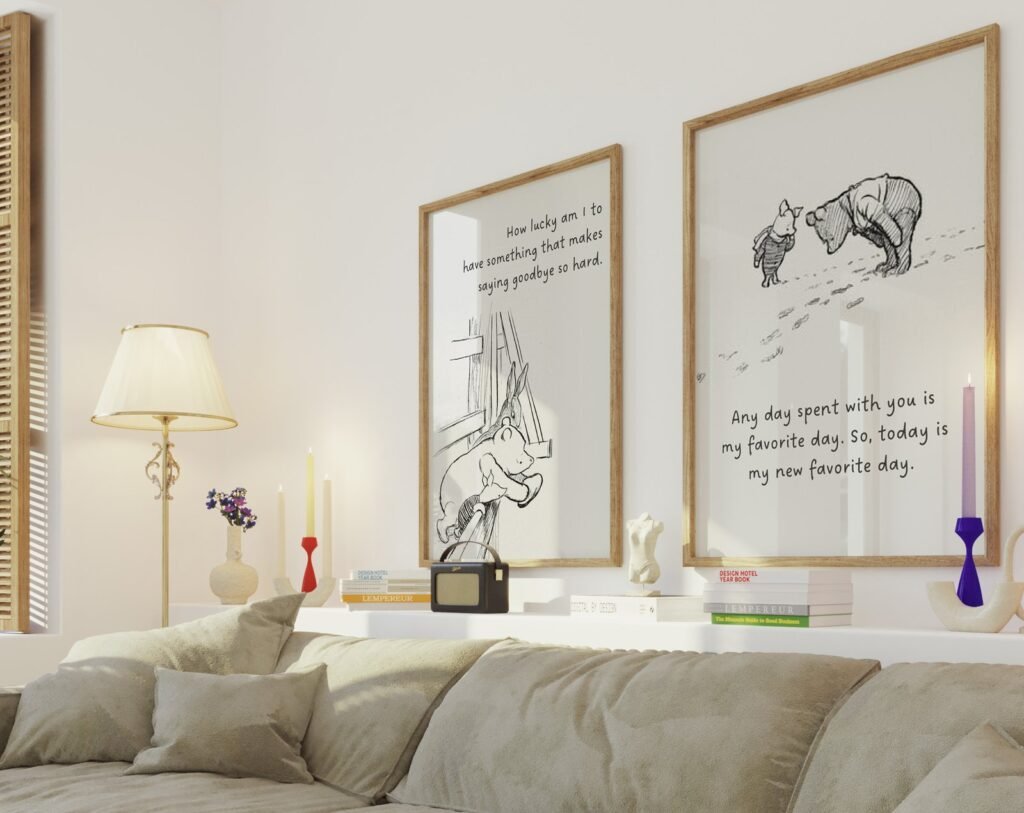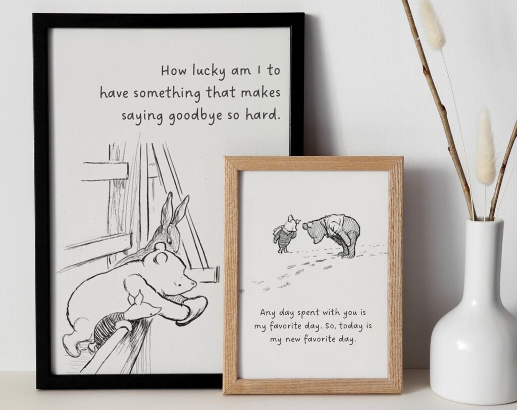 Our Winnie the Pooh Quote Prints, Black and White Pooh, set of 2, soothing colors, and heartwarming quotes that are bound to bring joy and comfort to your baby’s room. Each print is thoughtfully crafted to add a touch of magic and wonder, making it an ideal gift for new parents or a special treat for your own bundle of joy.